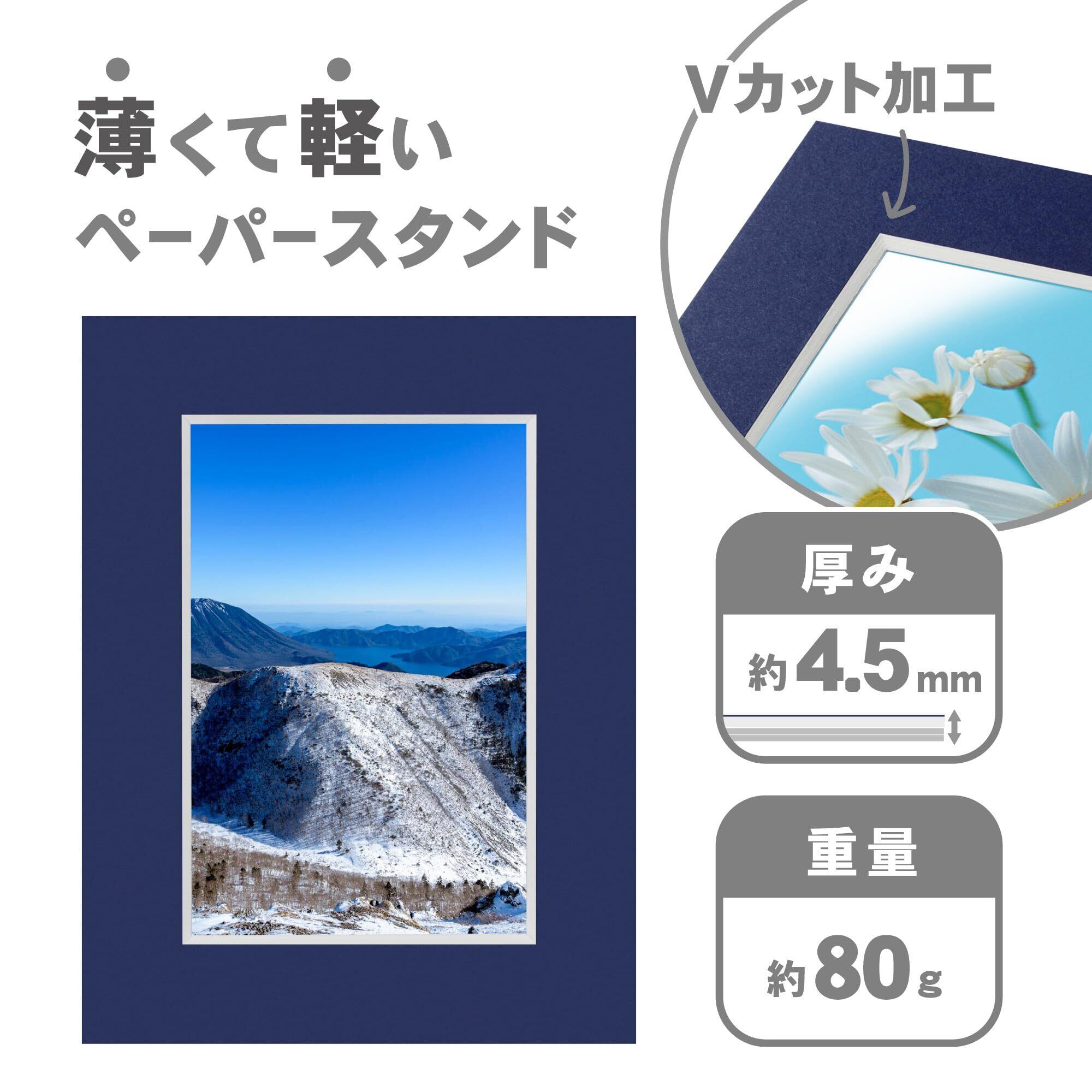 薄くて軽い紙製フレーム。 縦置きにも横置きにも使えるスタンド付きで、壁掛けにも対応。 写真やイラストはもちろん、メニュー表など幅広い用途に使えます。