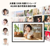 【大容量ストレージ&多機能】内蔵32GBの内部ストレージに加え、SDカードやUSBドライブ(別売り)での拡張が可能で、大容量の保存が可能です。これにより、スマートフォトフレームはあなたの大切な瞬間をより多く記録できます。自動回転、スライドショーモード、明るさ調整、スリープモードなど、多機能な設定であらゆるニーズに対応します。