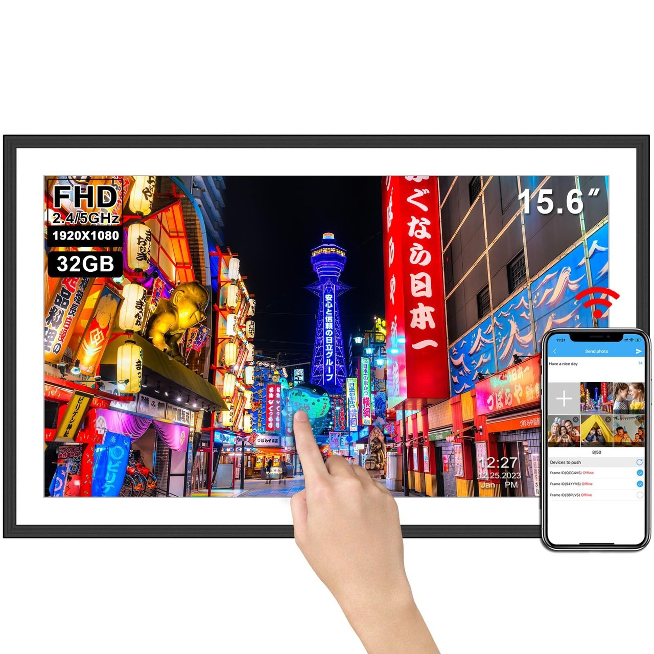 【在庫限り】デジタルフォトフレーム 15.6インチ大型デジタルフォトフレーム 32GB、2.4/5GHz WiFi 6対応、1920x1080 IPS HDタッチスクリーン、SDカード/USB対応、自動回転機能、壁掛け設置可能、アプリでどこからでも簡単に写真や動画を共有可能