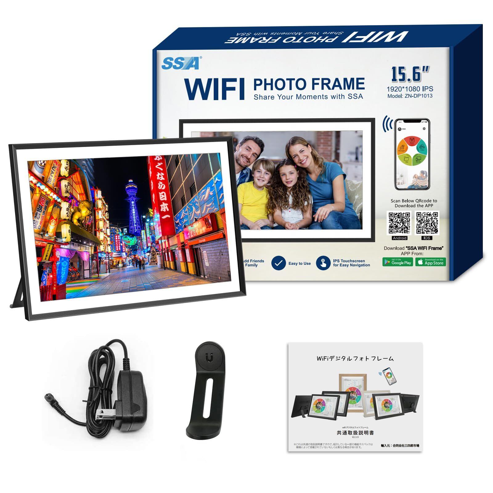【在庫限り】デジタルフォトフレーム、15.6インチ大型デジタルフォトフレーム 32GB、2.4/5GHz WiFi 6対応、1920x1080 IPS HDタッチスクリーン、SDカード/USB対応、自動回転機能、壁掛け設置可能、アプリでどこからでも簡単に写真や動画を共有可能