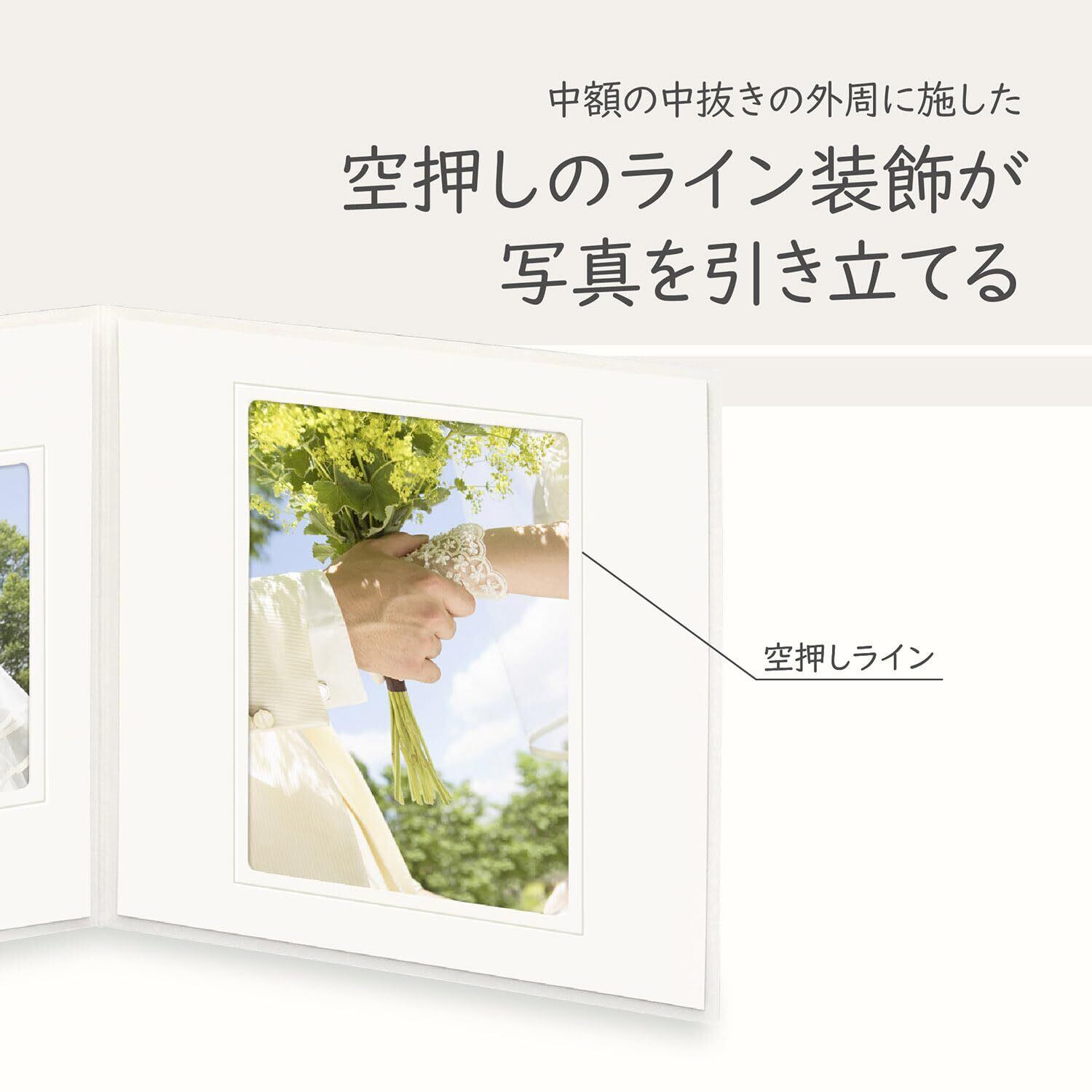 中額の中抜きの外周には空押しのラインで装飾を施しており、写真を引き立たせます。
