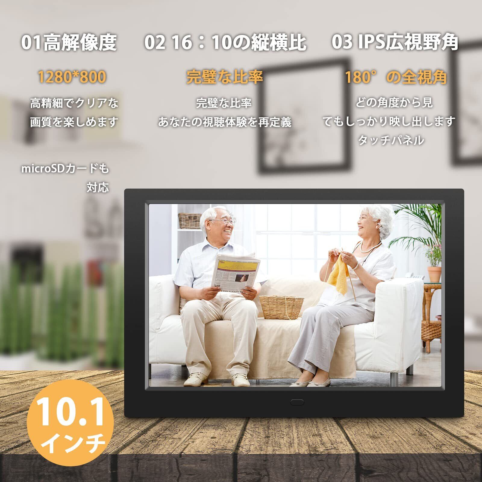 2.多機能:フォトフレームデジタル10.1インチは家に必要不可欠な時計とカレンダーディスプレイです。 また、自動再生画像に対応し、スライドライトや動画(追加Uプレートを挿入する必要があります)、朝のアラームや家の高齢者を飲む時間などアラームをオーダーします。 また、オートオープンやオフ時間など様々な機能を設定できます。