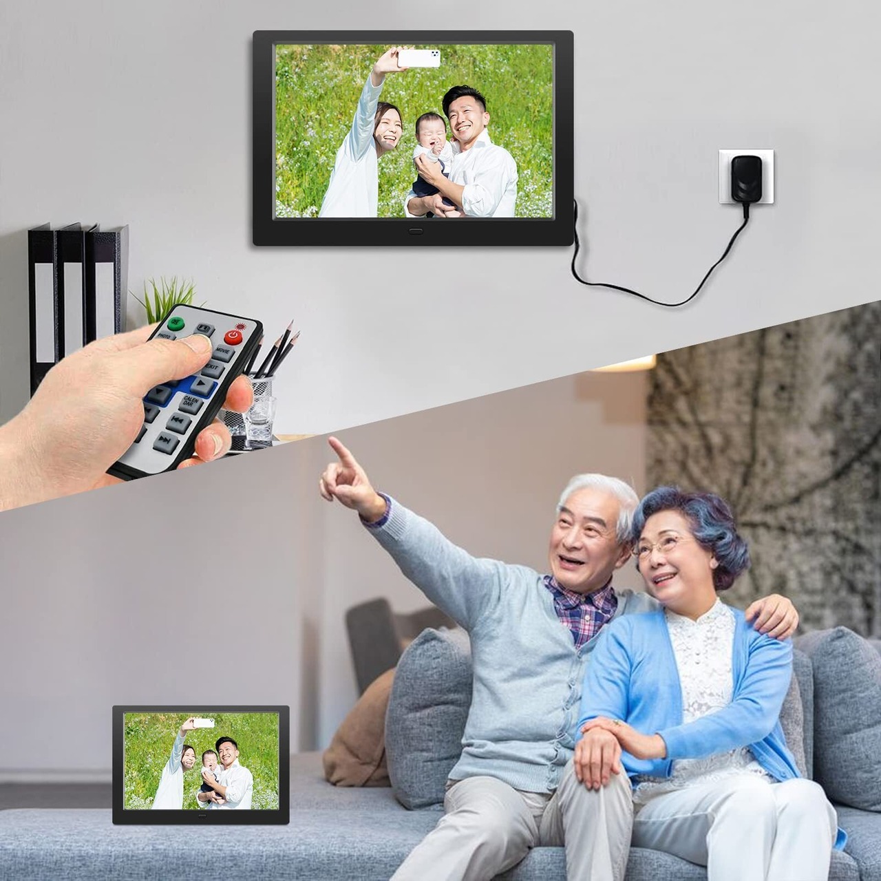 YOUYUデジタルフォトフレーム10インチ、リモートコントロール付きデジタルフォトフレーム、プラグアンドプレイ 1280*800高鮮明IPSパネル イ、自動再生写真/ビデオ/カレンダー/時計、電気フレームはUSBおよびSDカードをサポート (黑)