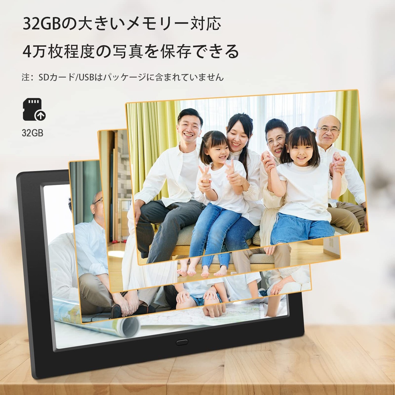 1.IPS高解像度表示:デジタルフォトフレームは1080PHDビデオ表示に対応し、Uディスク/SDカード(最大32Gまで)を差し込むだけで、お気に入りの写真、音楽、ファンタジー、ビデオを自動的に再生できます。 優れた色域を実現し、画像のリアルカラーを再現。