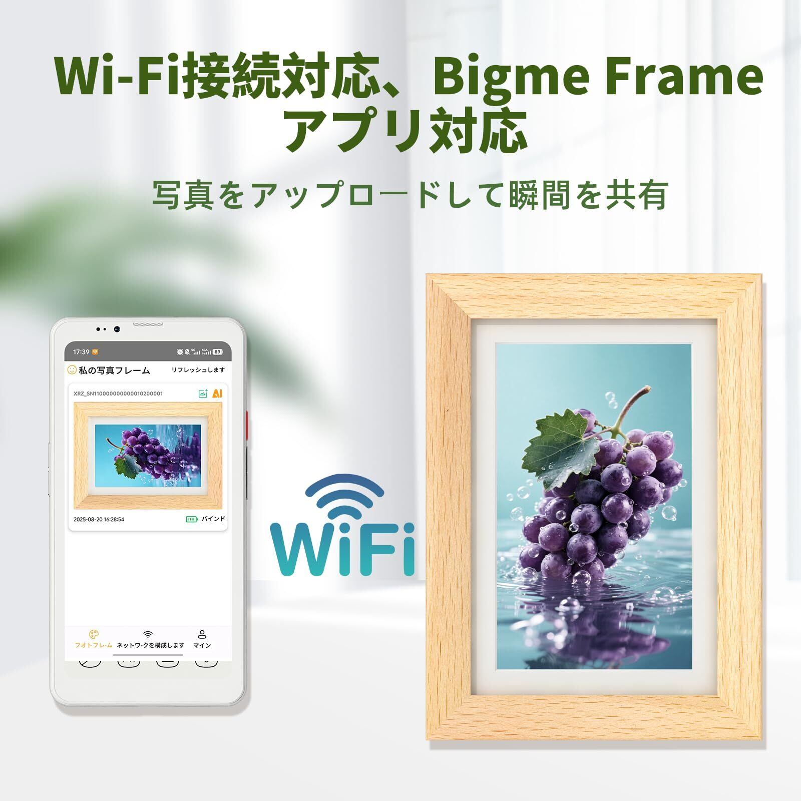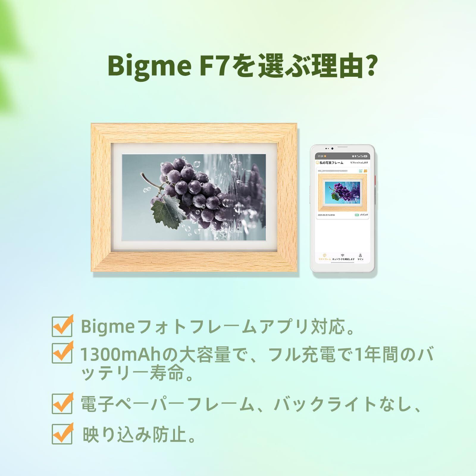 【限定セール】Bigme F7 デジタルフレーム 7インチ電子ペーパースクリーン、Wi-Fi接続、アプリで写真を共有