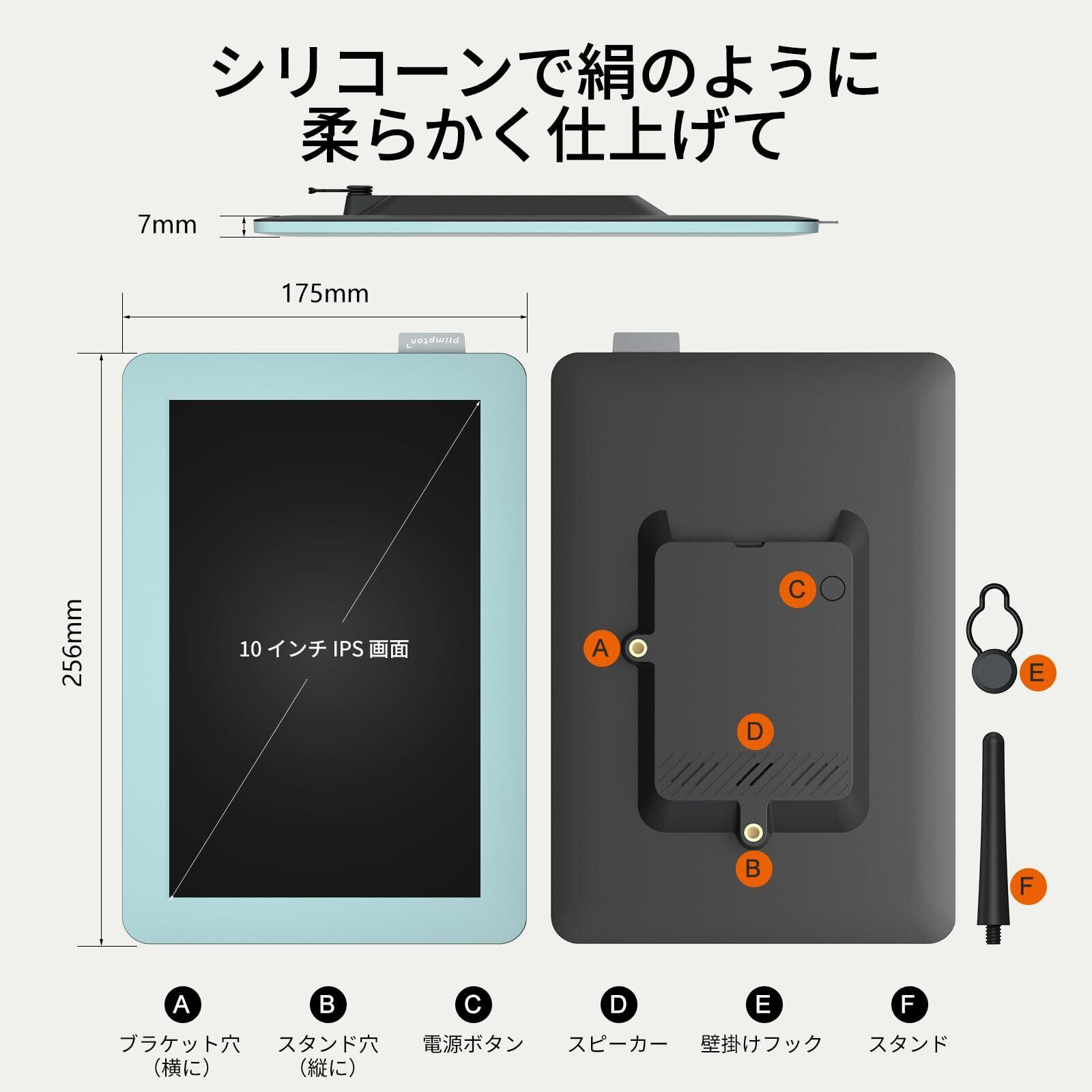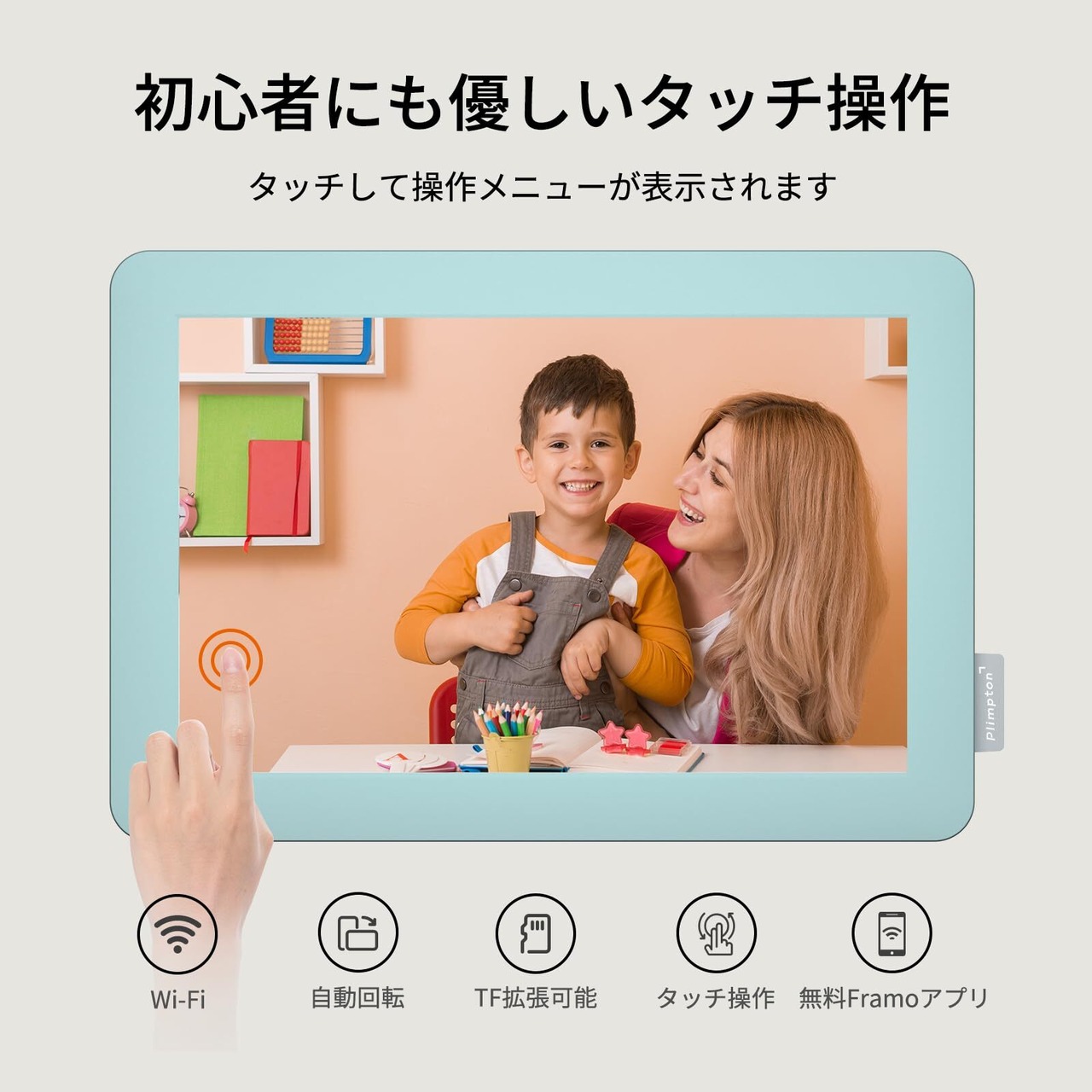 (タッチ画面、2025NEW人気色)写真立て、10インチ Wi-Fi デジタルフォトフレーム、写真/動画再生、写真フレーム、10.1型 IPS高精細 液晶 1280*800解像度、360度回転可能、遠隔転送 リアルタイムに共有、16GB内蔵 64GB SDカード/Type-Cメモリ対応、壁掛け、アプリFrameo付き、記念日祝日、子供の日、誕生日プレゼント、結婚祝い-Plimpton F10 青