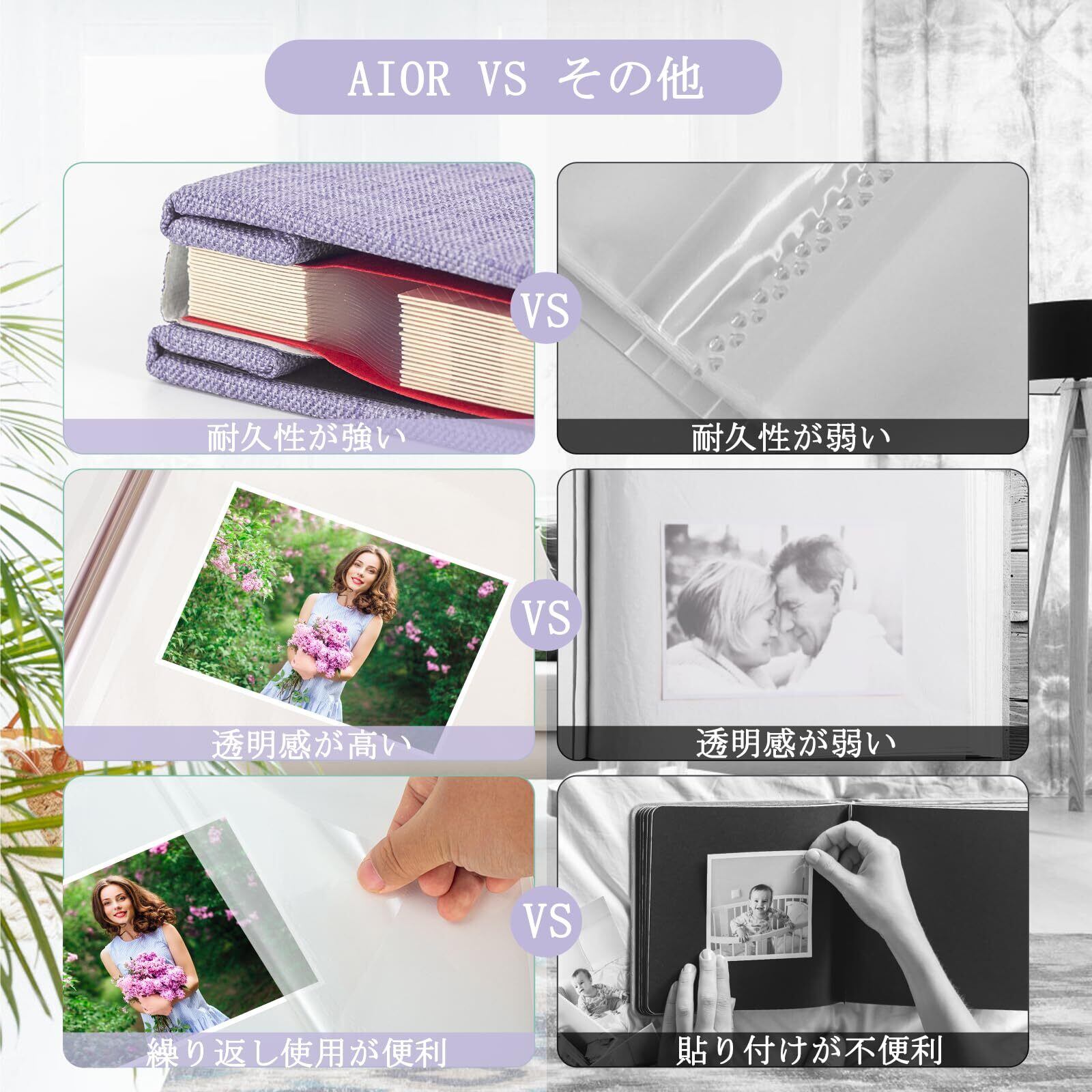AIOR 大容量 アルバム 貼るタイプ フォトアルバム 手作りフォトブック 粘着式 ファイル 33×34CM 台紙 L/KG/2L/A4写真収納 20枚40ページ DIY フリーアルバム 家庭用 記念日 結婚式 誕生日 成長記録 ギフト パープル