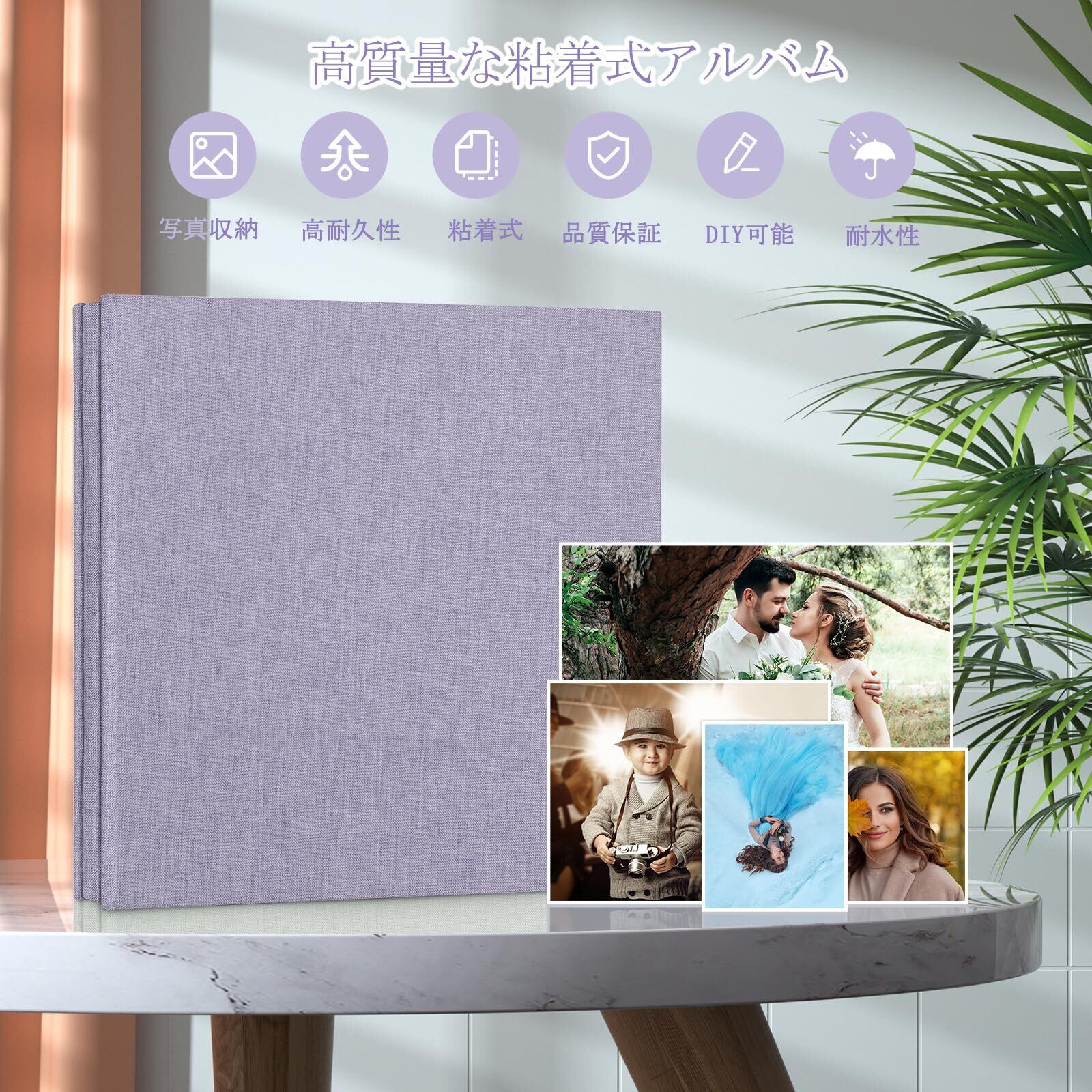 【人気商品】AIOR 大容量 アルバム 貼るタイプ フォトアルバム 手作りフォトブック 粘着式 ファイル 33×34CM 台紙 L/KG/2L/A4写真収納 20枚40ページ DIY フリーアルバム 家庭用 記念日 結婚式 誕生日 成長記録 ギフト パープル