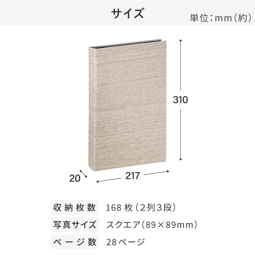 【サイズ(約)】H310×W217×D20mm【仕様】収納枚数:168枚(2列3段)、ページ数:28ページ、収納写真サイズ:89×89mm