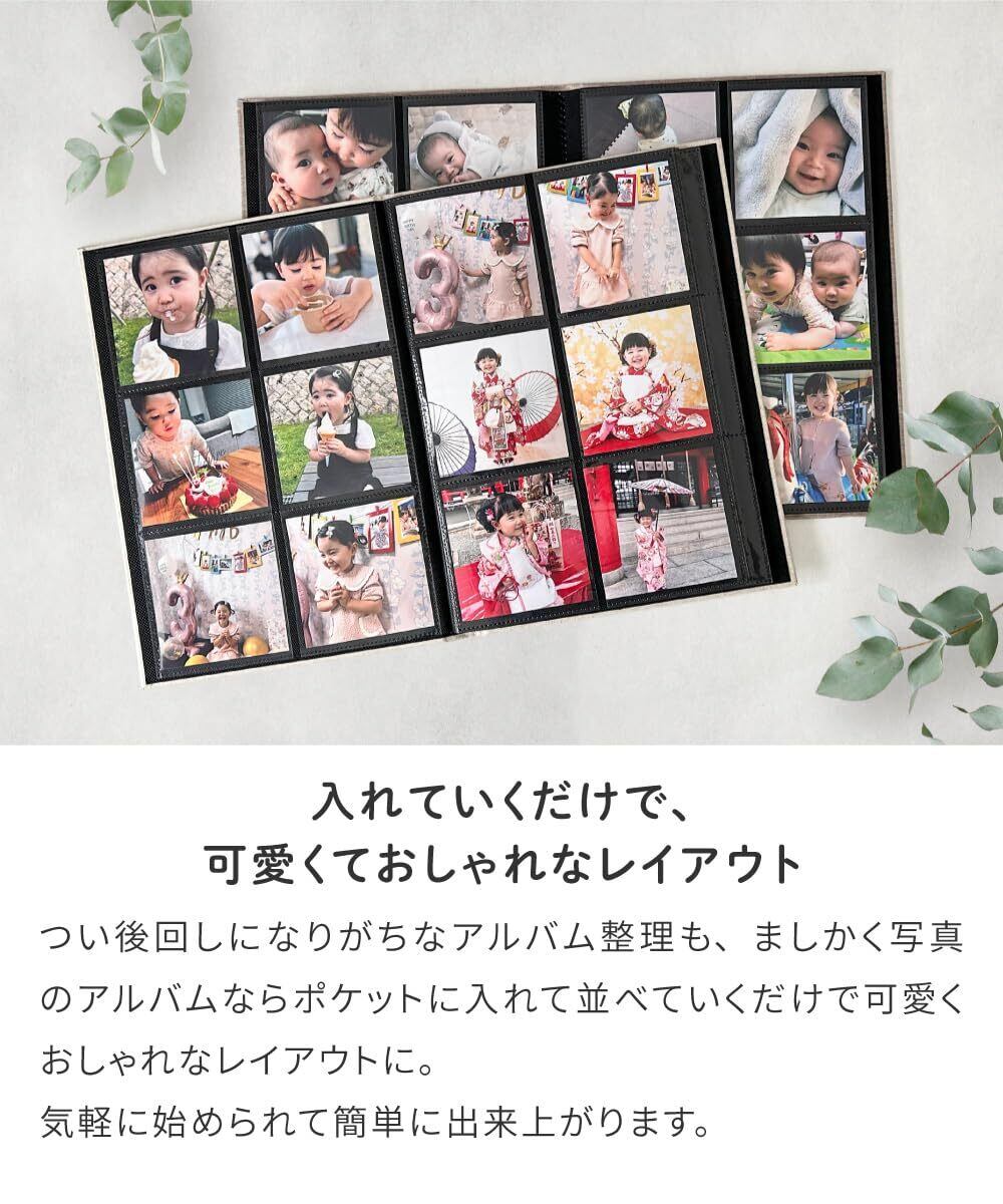 ましかく写真を入れていくだけで、ポケットに入れて並べていくだけで可愛くておしゃれなレイアウトにできるスクエアアルバム。