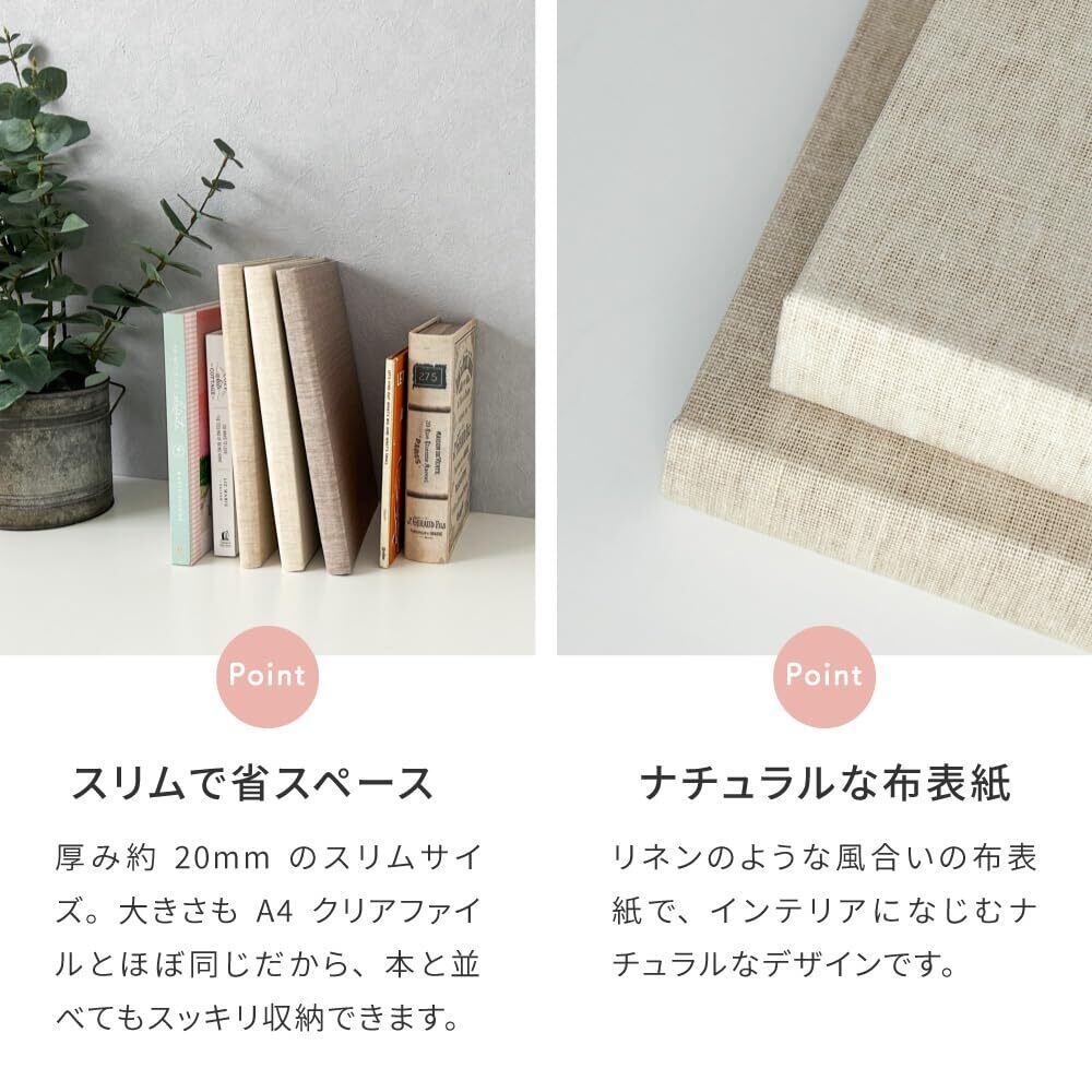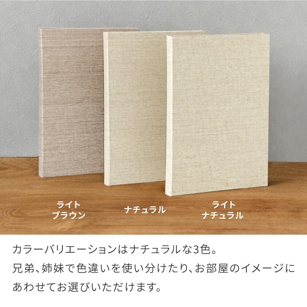 リネンのような風合いの布表紙で、インテリアになじむナチュラルなデザインのましかくアルバムです。