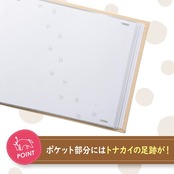 ポケットには写真を鮮やかに見せる透明度の高いフィルムを使用しています。ポケットの背景部分にはトナカイの足跡をあしらっています。