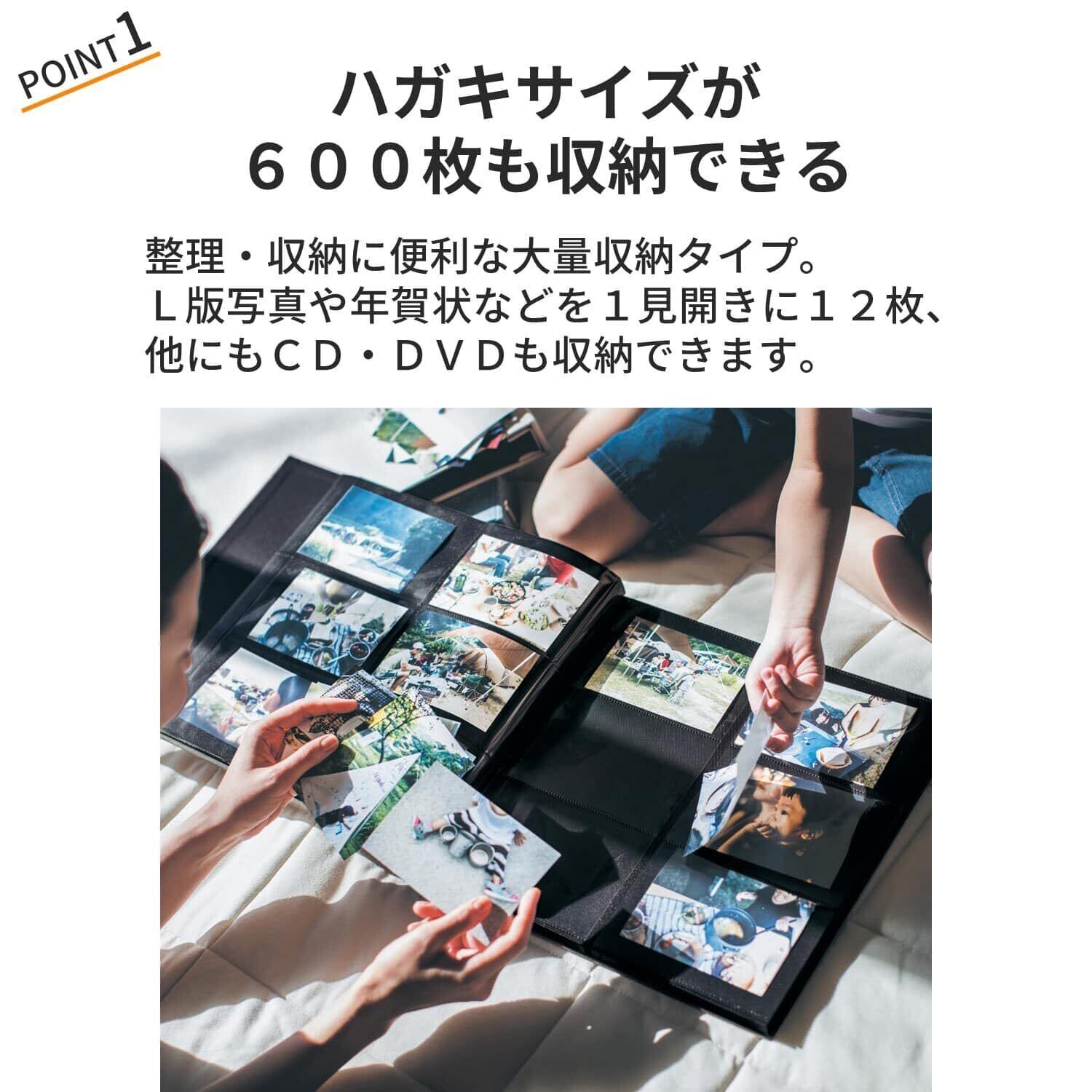 【人気商品】[ベルメゾン] アルバム 大容量 600枚 写真 はがき収納 黒台紙 生地張り表紙 横収納 ライトブラウン