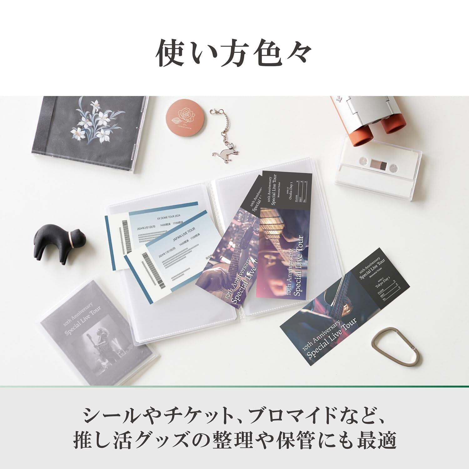 シールやチケット、ブロマイドなど、推し活グッズの整理や保管にも使用可能。