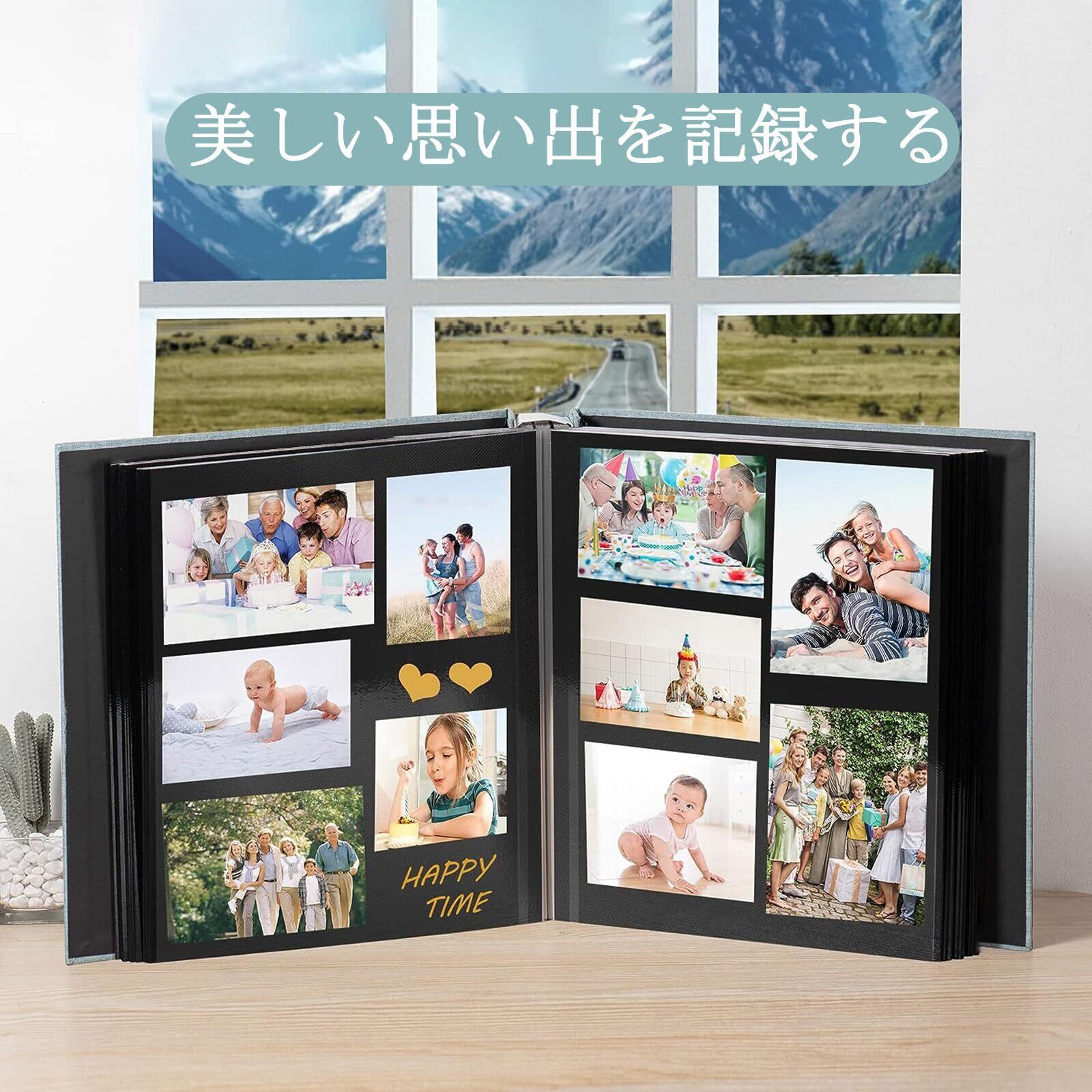 【粘着式な黒台紙】粘着式なフリー台紙だから、L判、2L判、KG判などのサイズ違いの写真を1ページにまとめて整理できます。多くの大切な写真や思い出を収容するのに十分なスペースを提供します。粘着式な黒台紙が付いており、写真を鮮明かつ鮮やかに表示することができます。