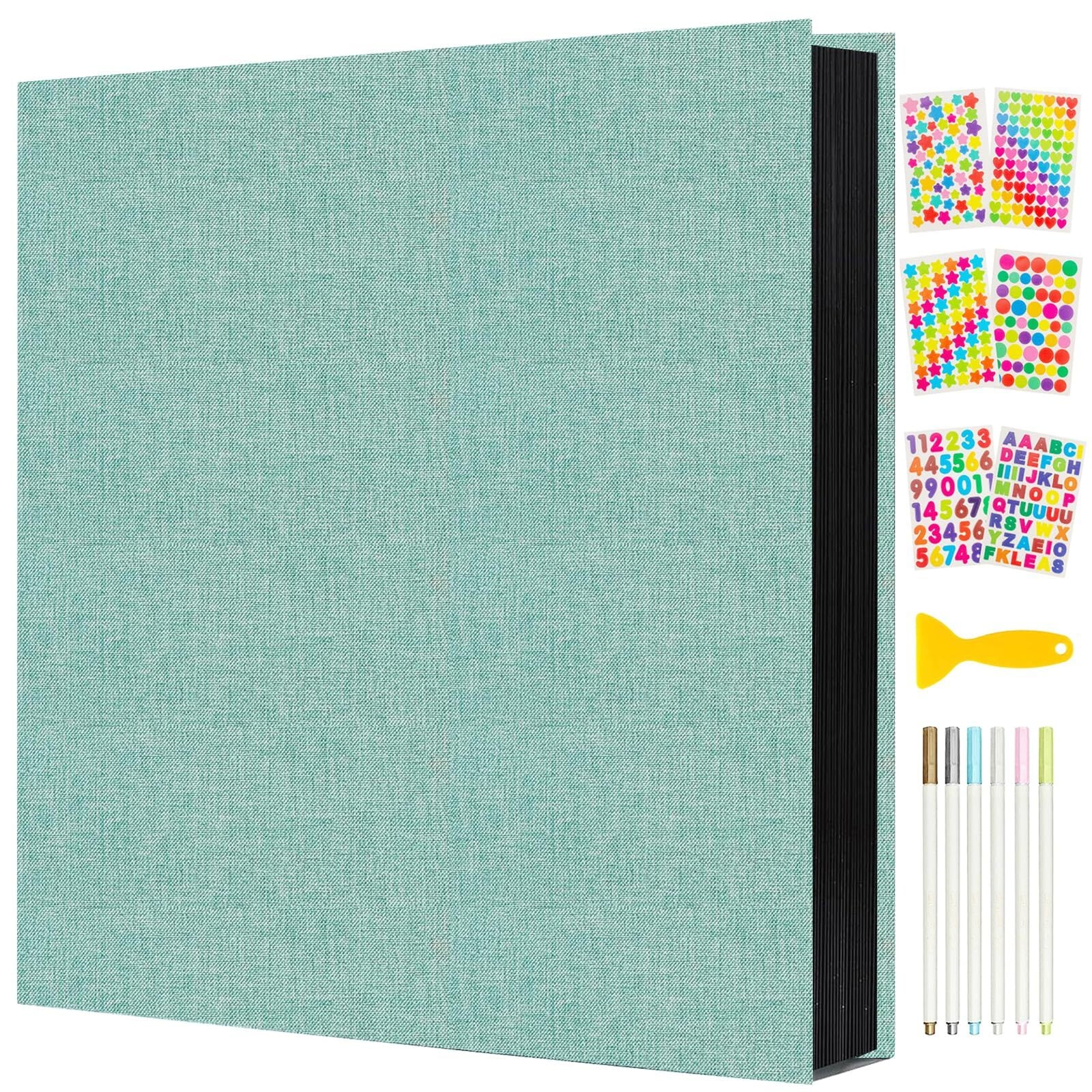 【数量限定】AIOR アルバム フォトアルバム 貼るタイプ 黒台紙 写真アルバム フリーアルバム 手作りアルバム フォトブック 粘着式 ファイル 集合写真用 20枚/40ページ 大容量 DIY可能 記念日 結婚式 誕生日 子供 ベビー プレゼント ターコイズ