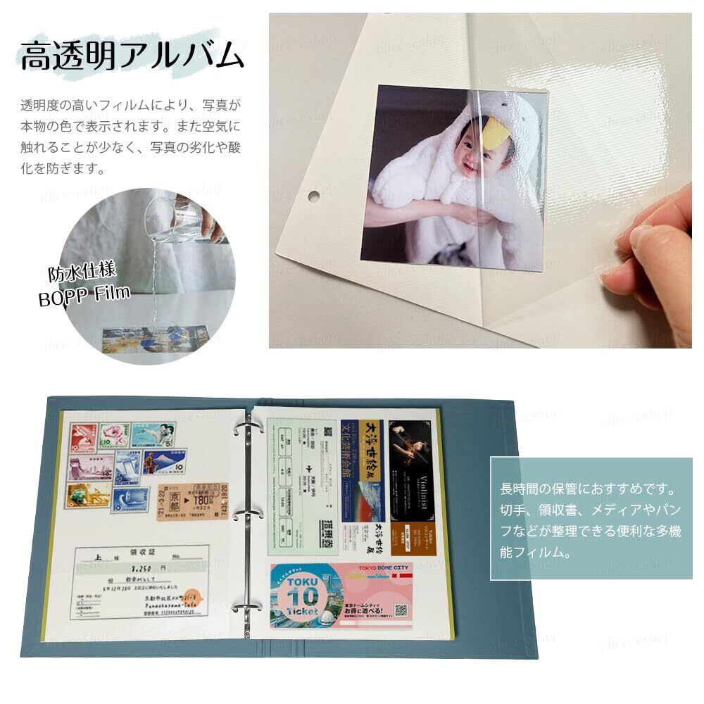 【高透明アルバム】透明度の高いフィルムにより、写真が本物の色で表示されます。また空気に触れることが少なく、写真の劣化や酸化を防ぎます。長時間の保管におすすめです。 切手、領収書、メディアやパンフなどが整理できる便利な多機能フィルム。