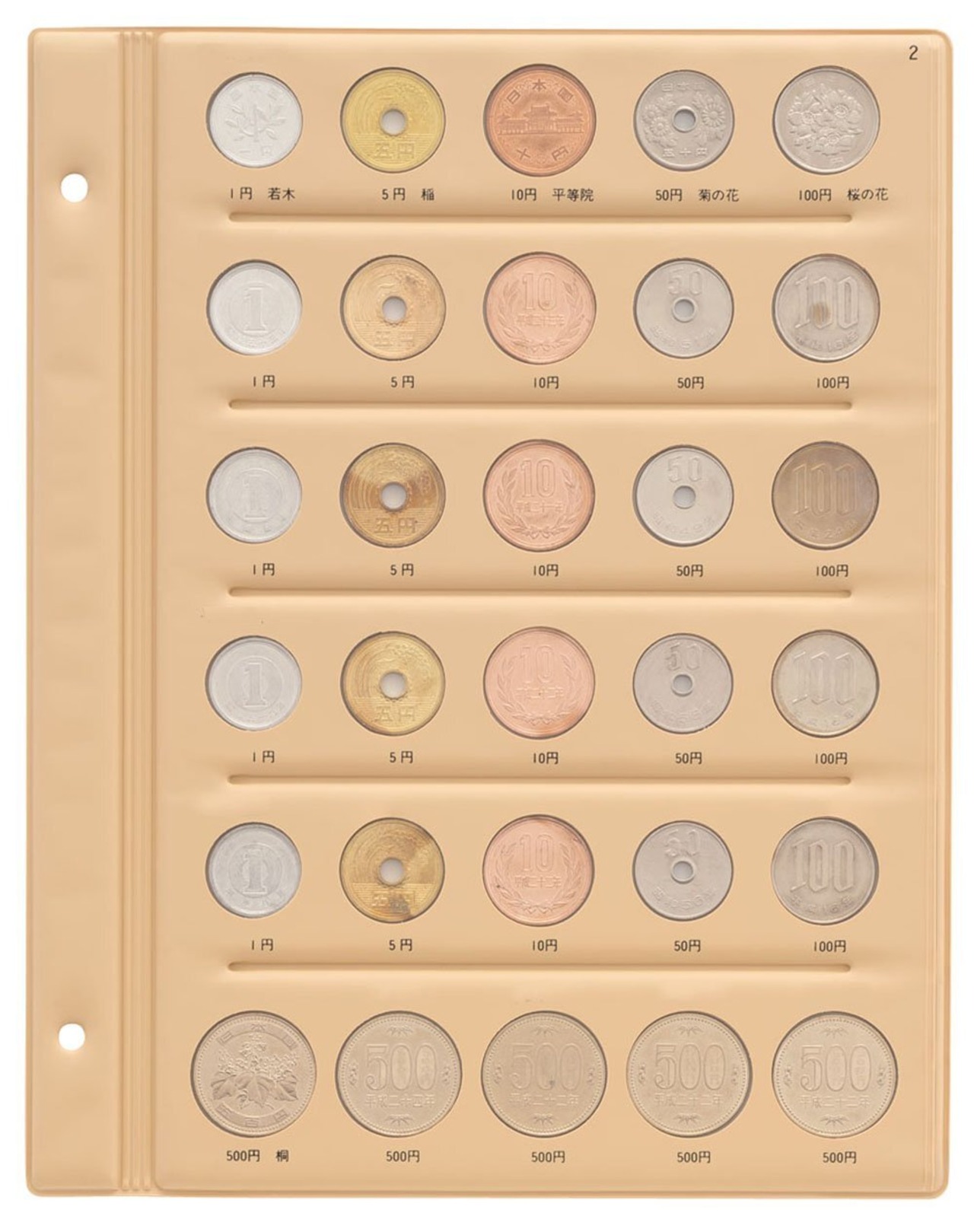 【その他】生産国:日本 ※コインアルバムシリーズ(B5・S型・2穴タイプ)にセットすることが出来ます。 ※コインスペア台紙を追加する際は、ビスをドライバーやコインなどで開閉してください。