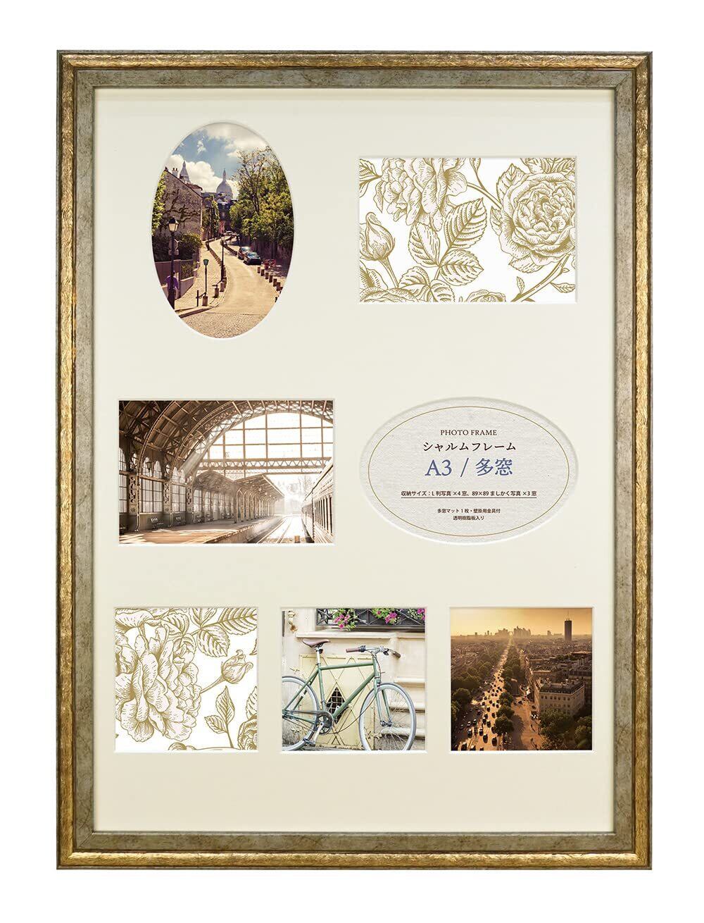 ■【エレガントなデザインで魅せる!】万丈のシャルムフレームは、A3サイズに対応した多窓デザインが特長です。ダークゴールドの華やかな仕上げが、お部屋の雰囲気を一層引き立ててくれます。大切な写真やアートをスタイリッシュに飾ることができます!