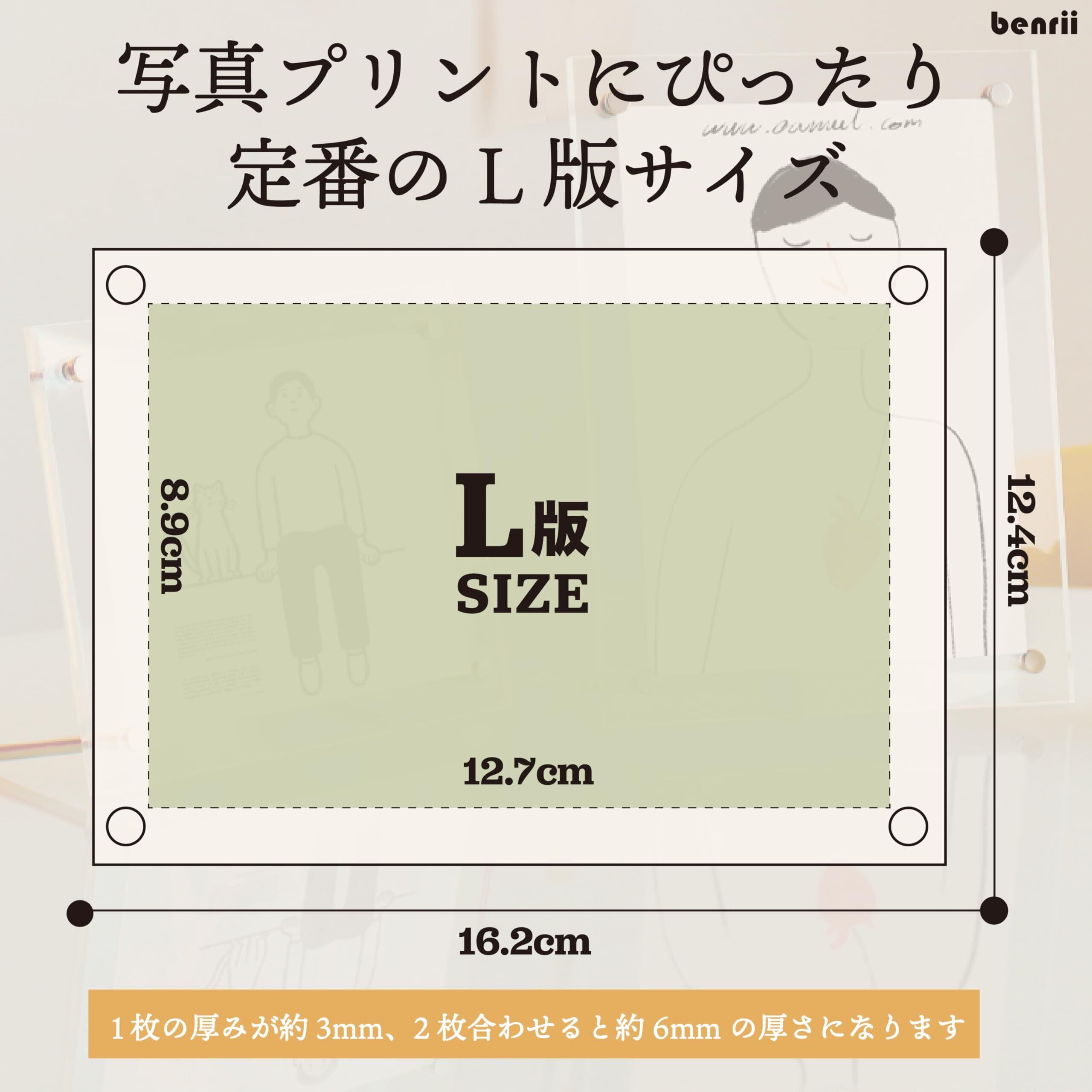 benrii L判 アクリルフォトフレーム 写真立て 額縁 スタンドタイプ 横置き縦置き兼用 写真フレーム 両面透明 ポスター