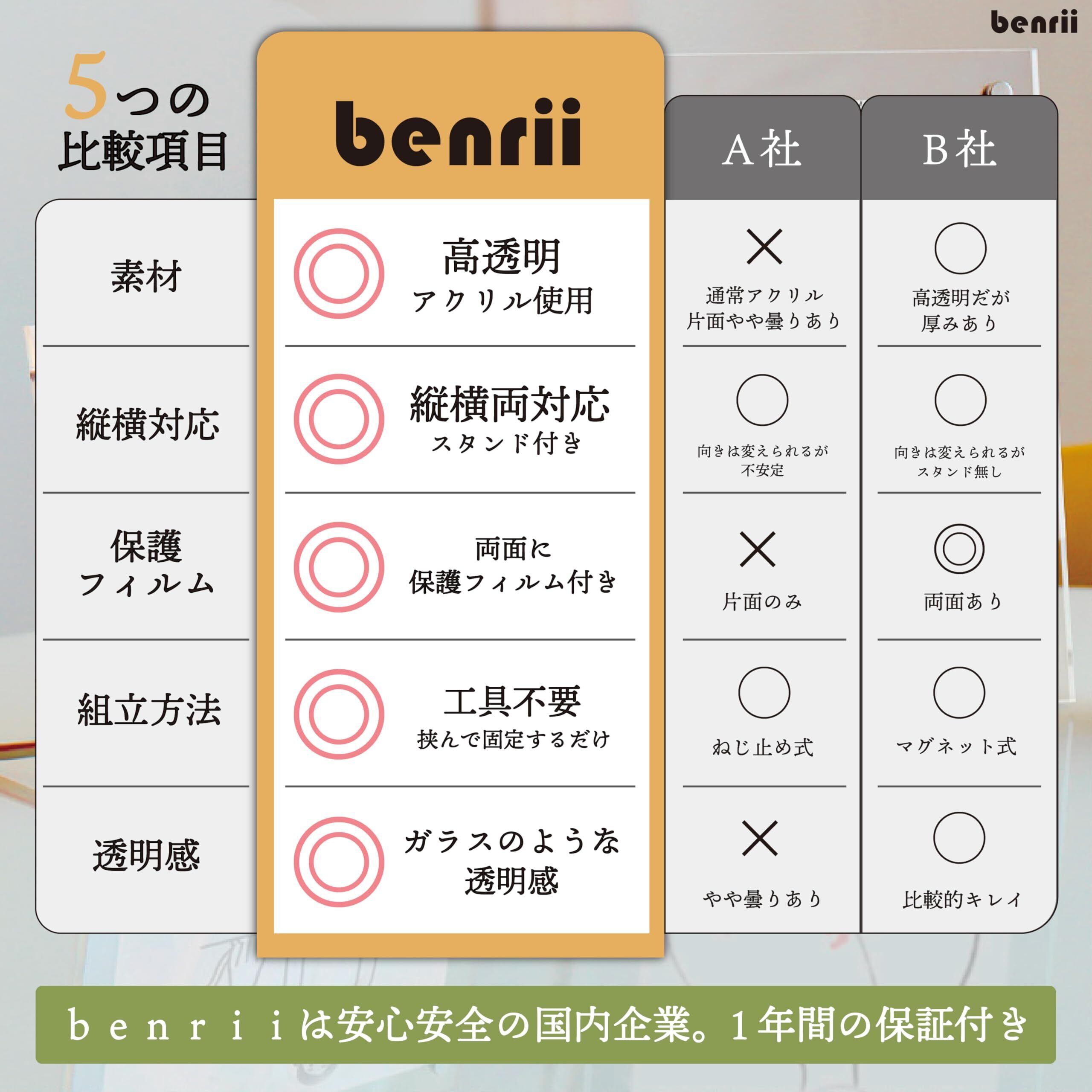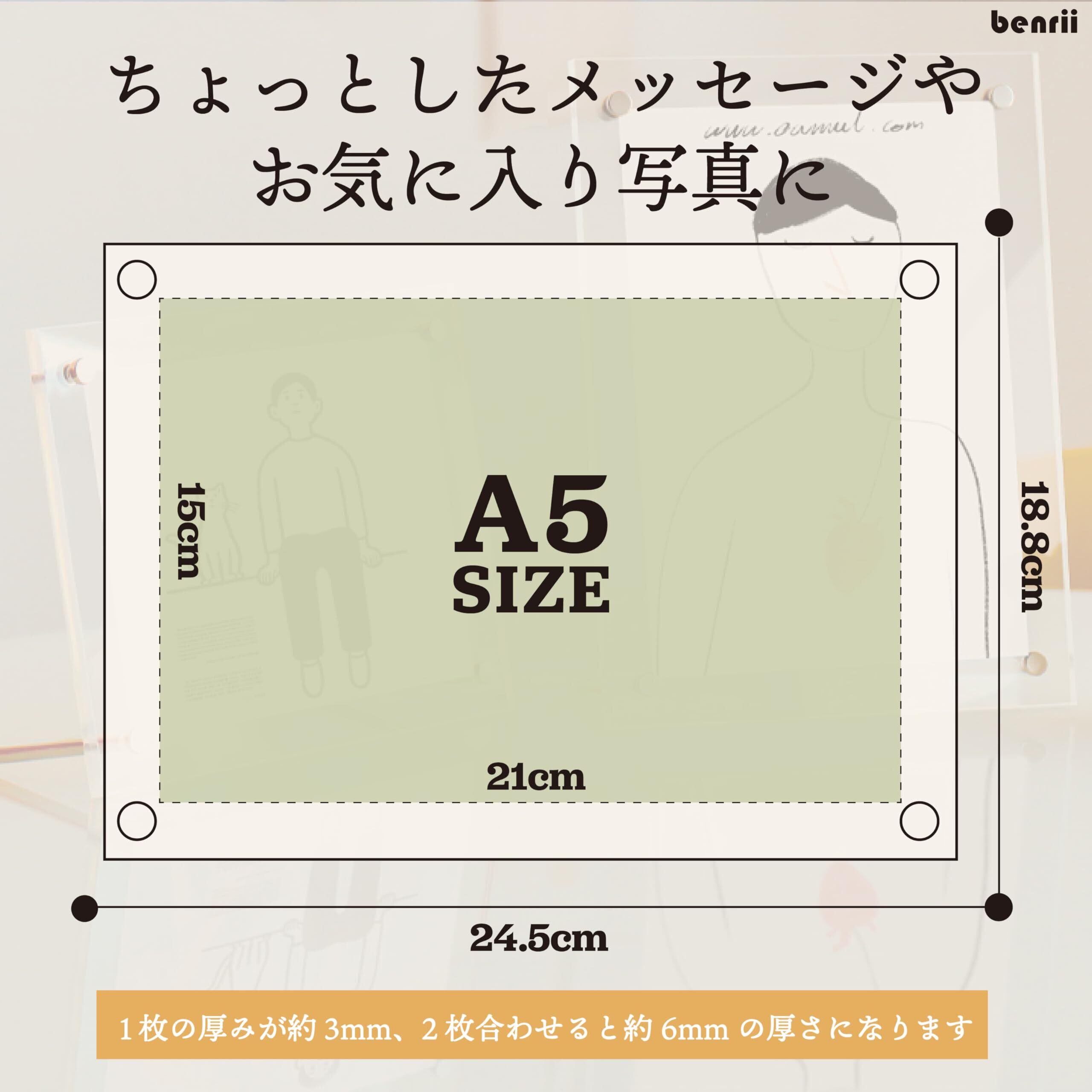 benrii A5 アクリルフォトフレーム 透明 額縁 スタンドタイプ 横置き縦置き兼用 写真フレーム 両面透明 ポスター 写真立て