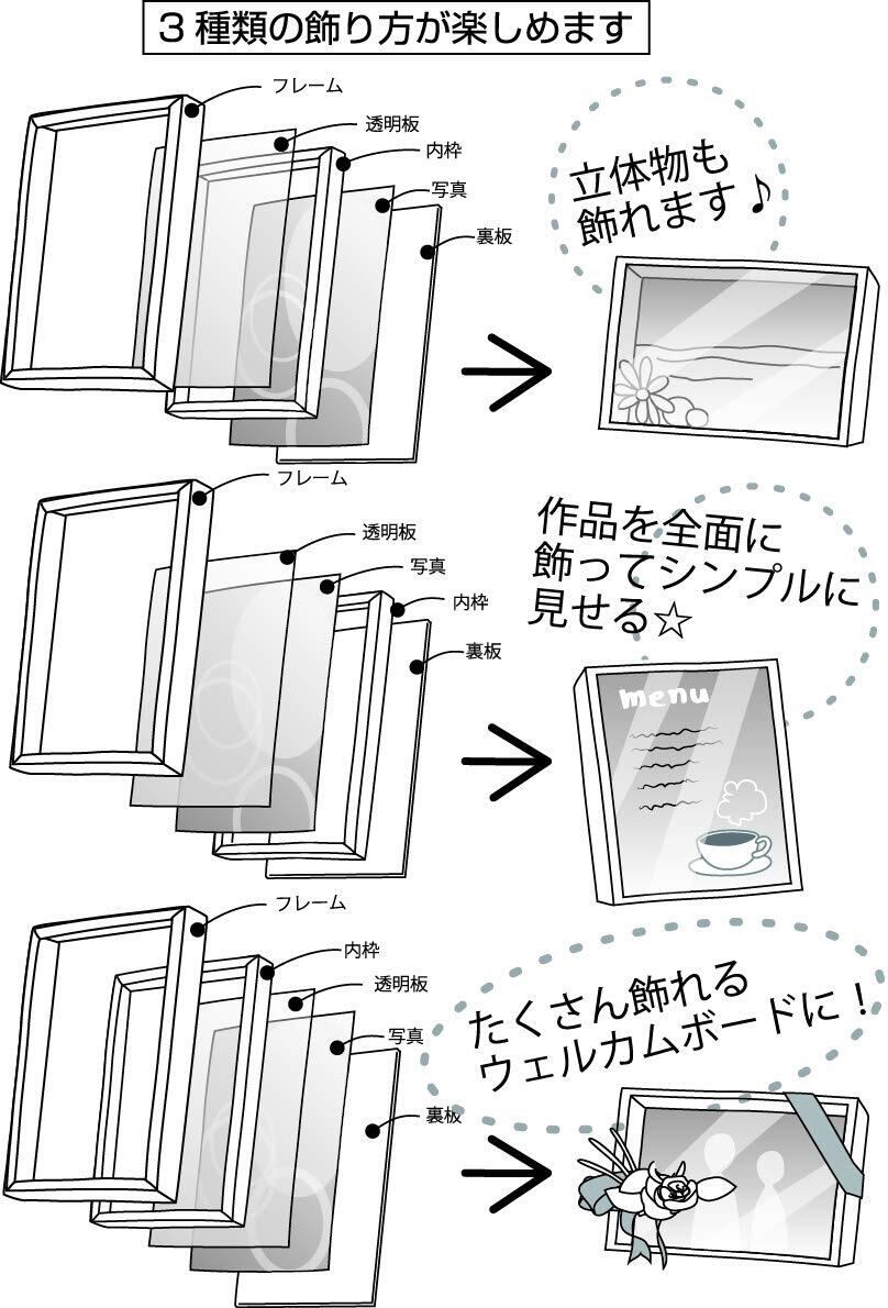■透明板と内枠の組み合わせにより、写真をメインにした場合や、記念の立体物と一緒に飾る場合、そして奥行きをもたせて写真をスタイリッシュに飾る場合におすすめ