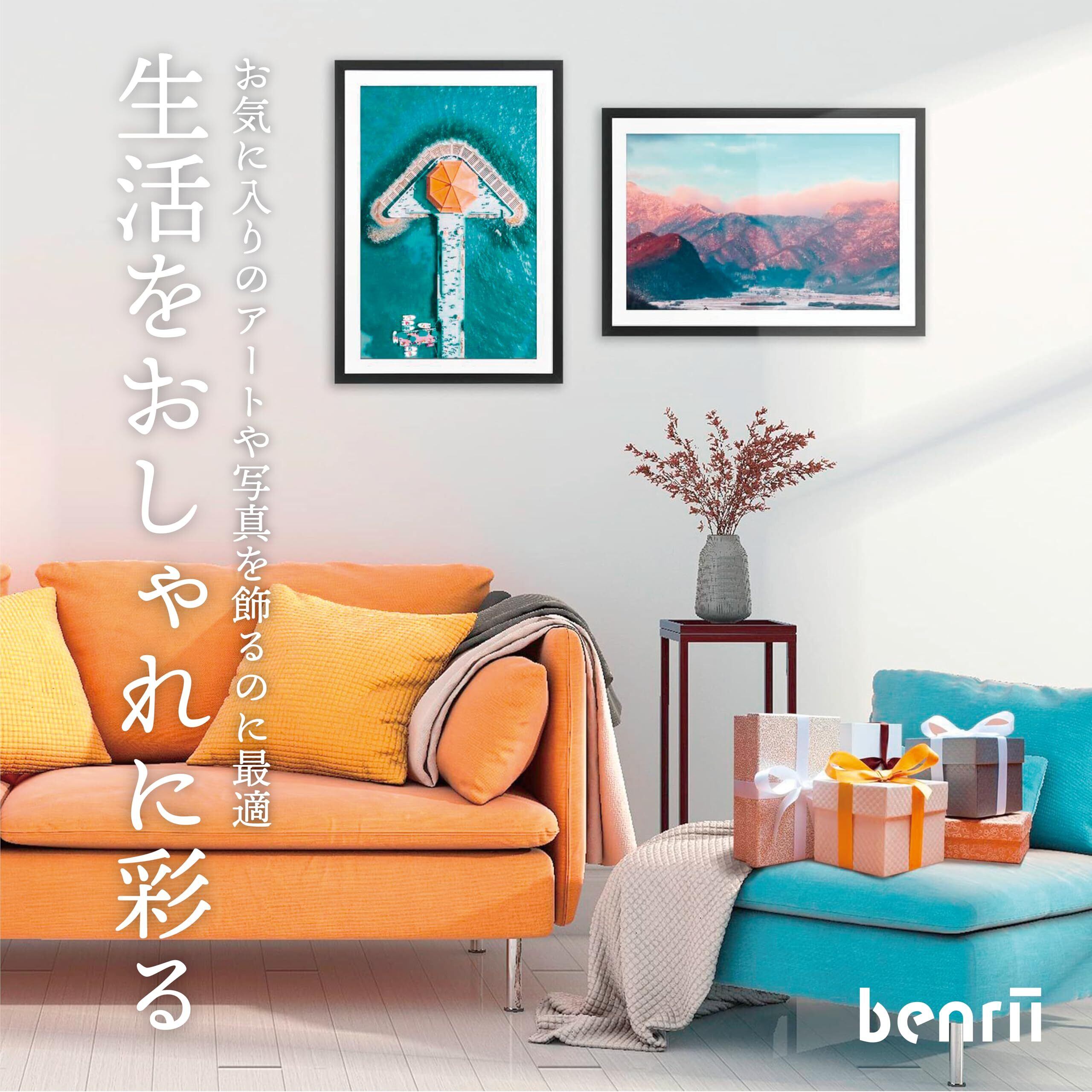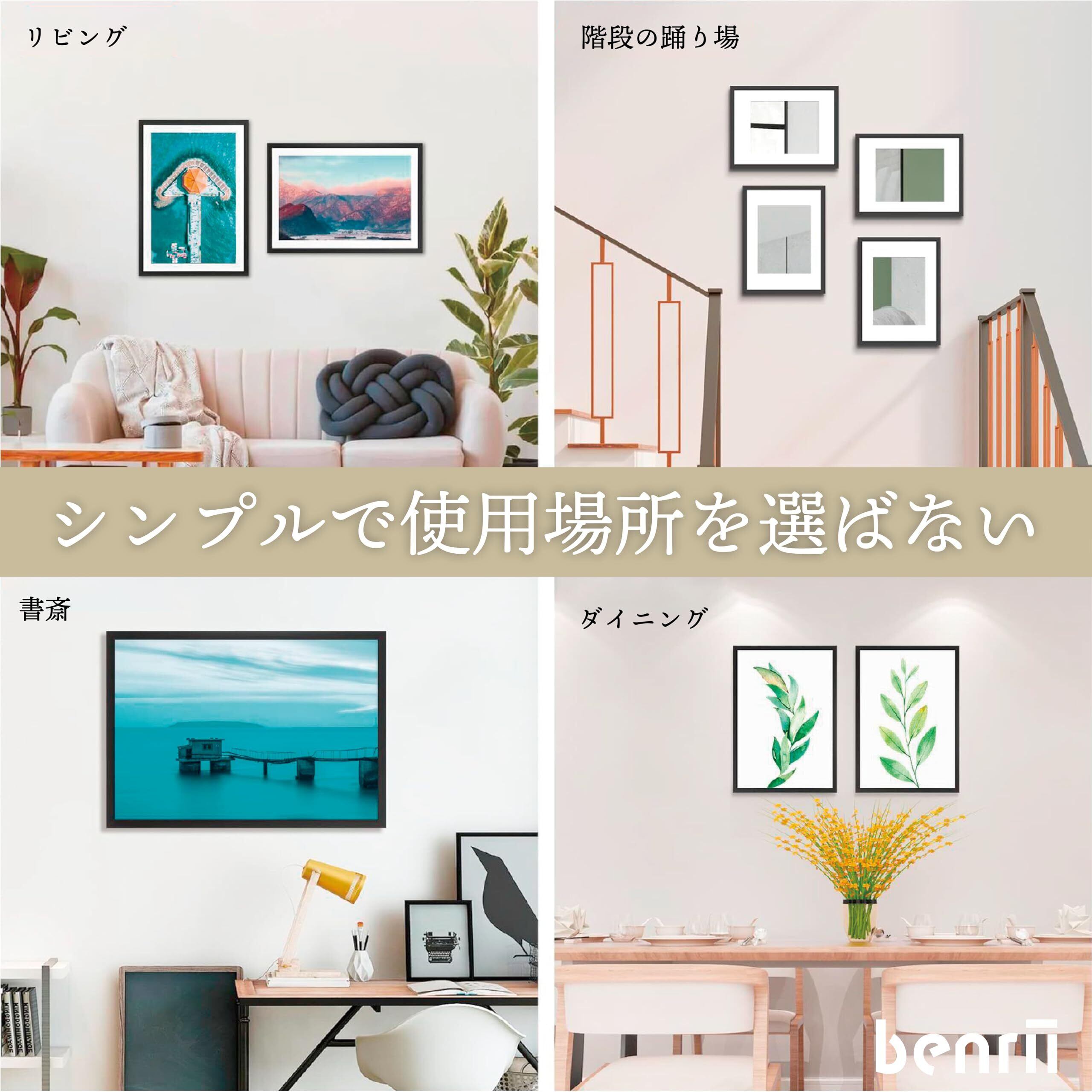 ■【シンプルでスタイリッシュなブラックデザイン!】benriiのA3壁掛け額縁は、洗練されたブラックカラーが存在感を放ち、さまざまなインテリアスタイルにマッチします。大切な作品やポスターを上品に飾ることができ、お部屋を一層引き立てます。