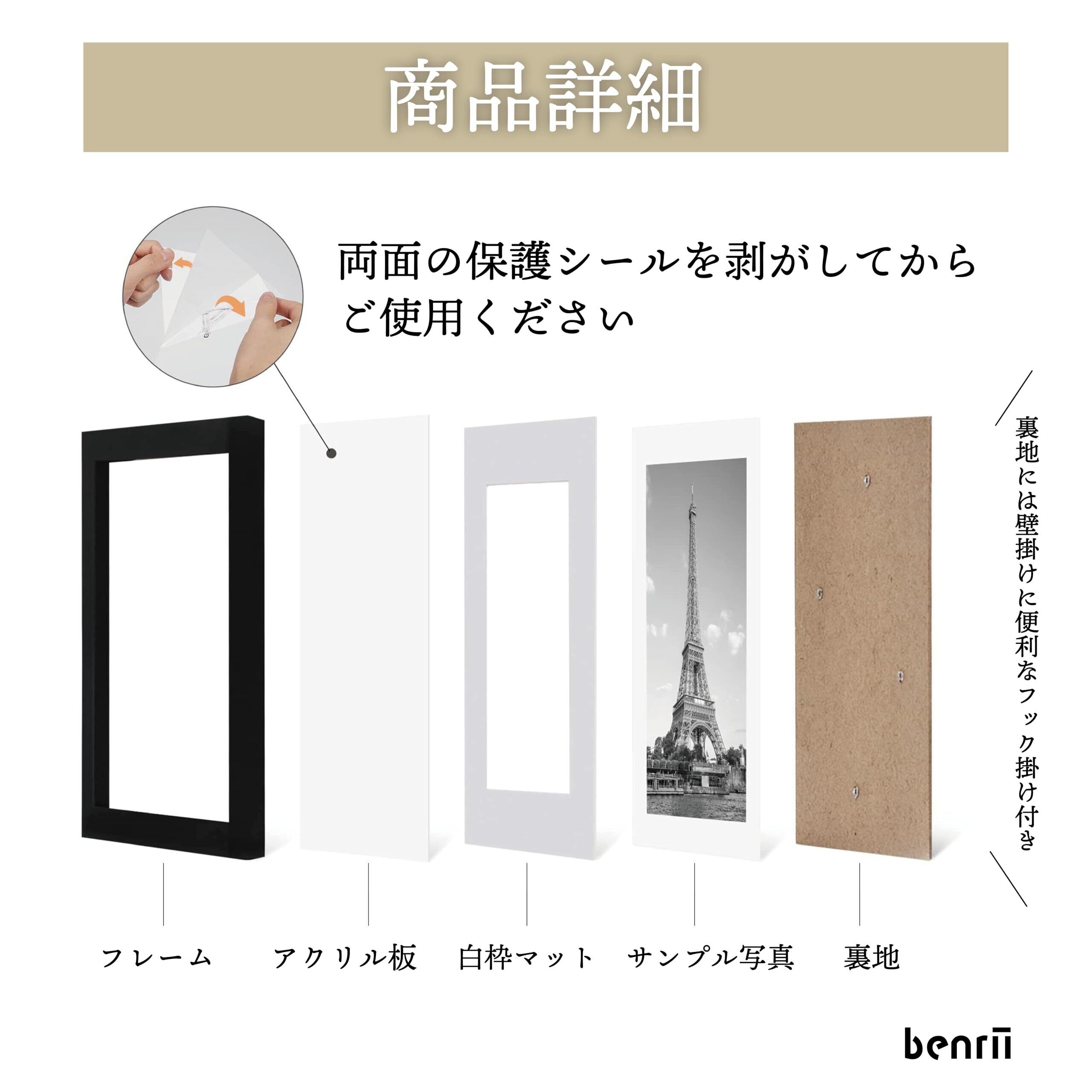 【商品仕様】本体サイズ:337mmx459mm。対応写真寸法:A3判写真を入れるのに最適。型紙を入れた際は210mmx297mm、型紙無しでA3サイズの297x420mmにピッタリ! 【高い透明度】benriiのフォトフレームは透明度が高いアクリル素材を使用しています。写真の細部まで綺麗に見ることができます! 【シンプル】benriiのフォトフレームはシンプルなデザインなので、どこに置いても邪魔をしないスタイリッシュなデザイン! 【耐久性◎】benriiのフォトフレームはMDF&アクリル製で、割れにくい!お子様のいるご家庭でも安心してご使用できます。 【安心の国内企業】benriiは安心安全の国内企業。1年間の付き!