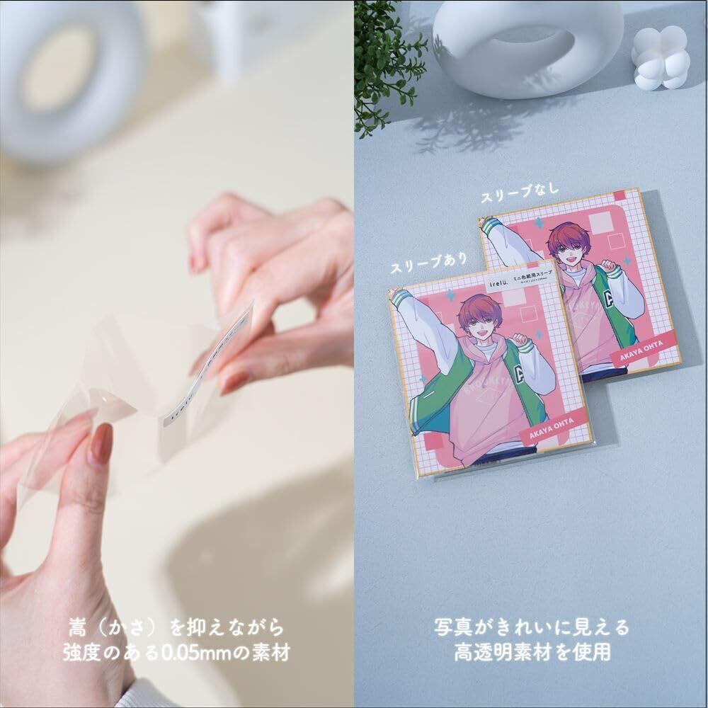 【推し活収納系インフルエンサー『mico』監修】ミニ色紙(121mm×136mm)用の高透明保護スリーブ。耐久性のある0.05mmの素材を採用し、またミニ色紙の色彩や細部の美しさを損なわない高透明素材を使用しています。サイズはミニ色紙ぴったりに調整されており、アルバムに収納した際に美しく見えるように設計されています。