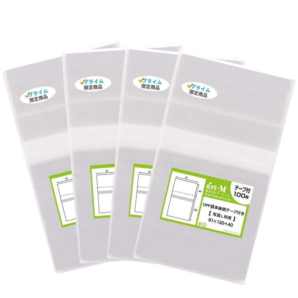 【人気商品】アート・エム 1up商品【国産】本体側テープ付 【ぴったりサイズ】写真L判用 OPP袋【1000枚】91x130+40mm