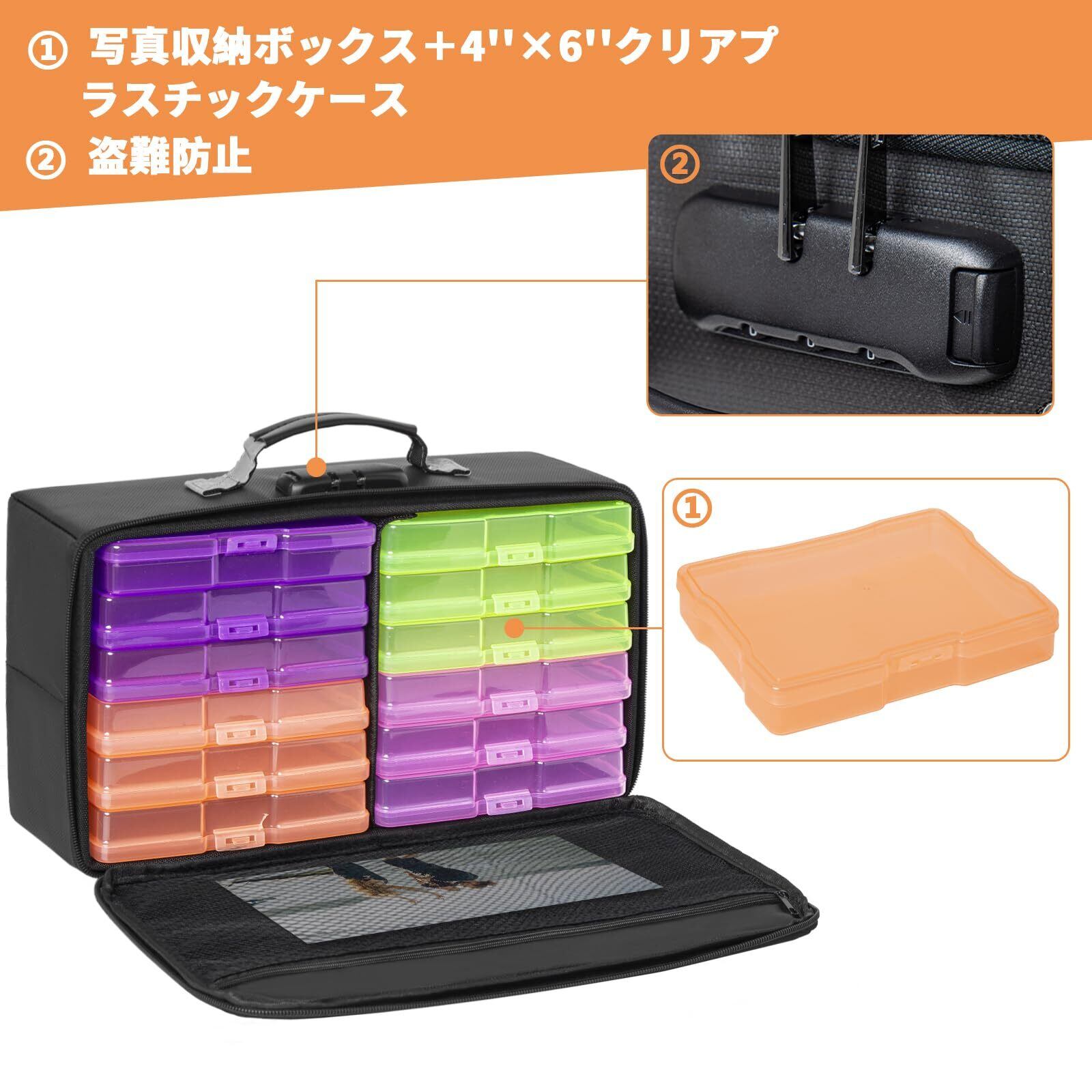 BQKOZFIN 写真収納ボックス 写真はがき収納ボックスカラー 12個の内部写真マネージャ ジュエリー玩具DIY工具収納保管ボックス 1寸/2寸/3 R/4 R写真収納ボックスカラー カラー写真分庫 大容量収納 ブラック精緻防火盗難防止外箱+カラー内箱セット