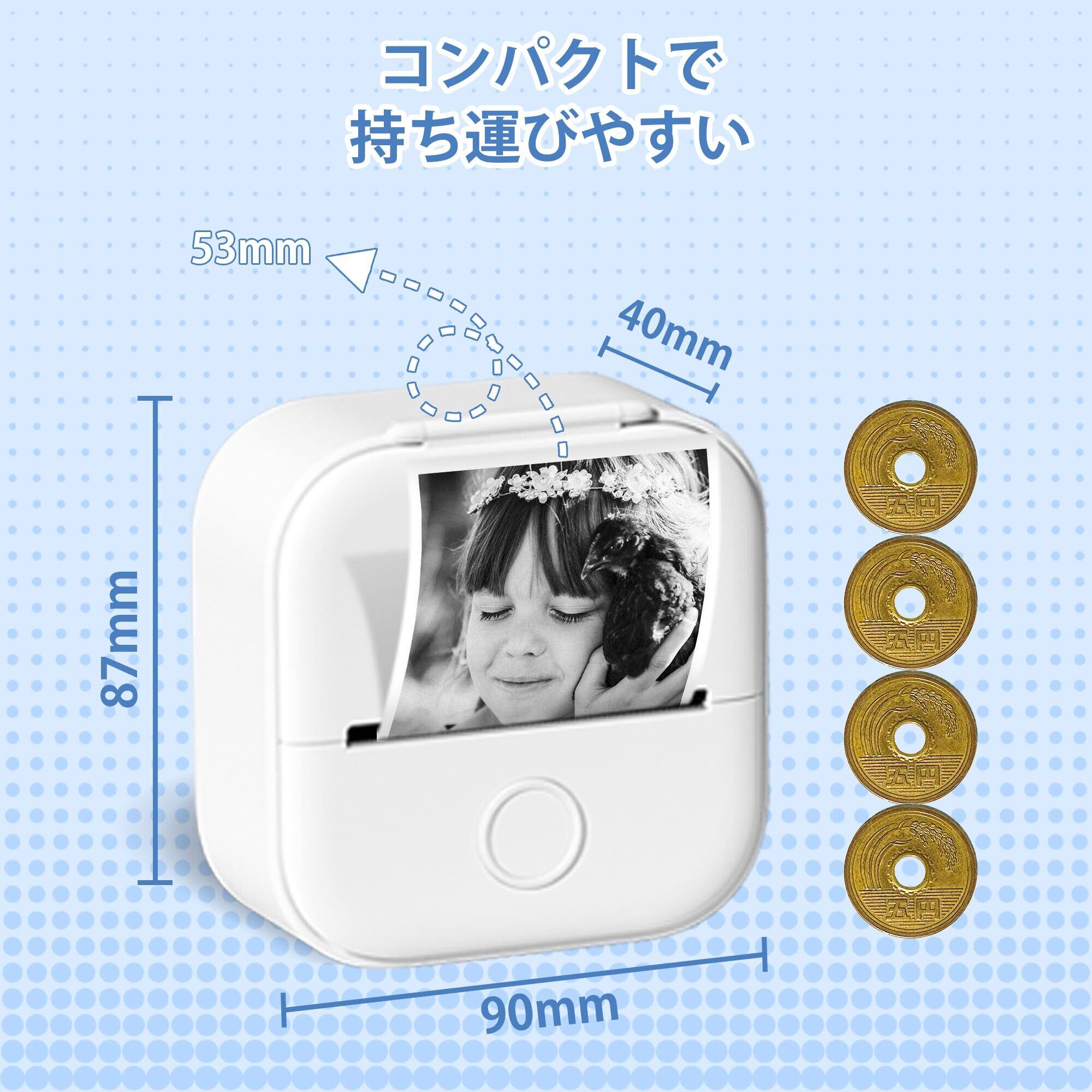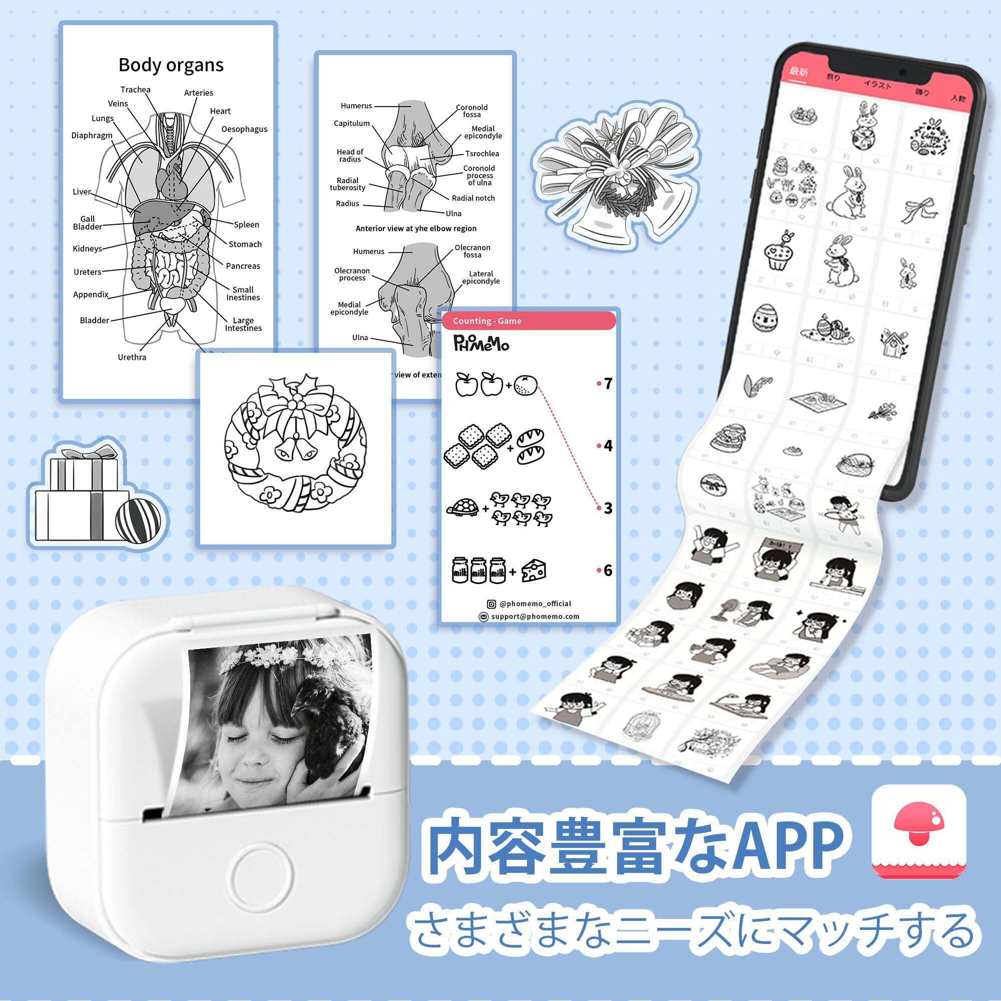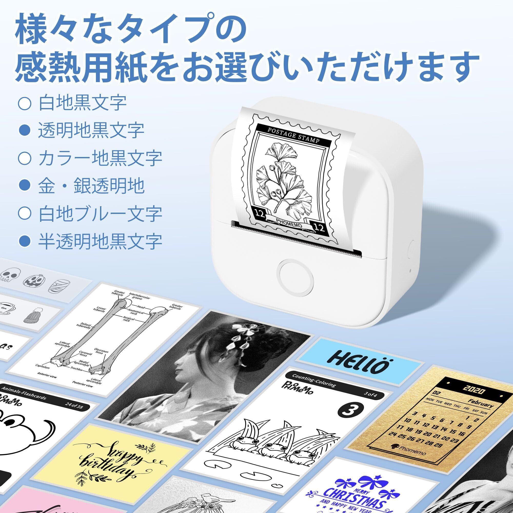 Memoking T02 ミニプリンター サーマルプリンター スマホ対応 感熱 携帯プリンタ ステッカー印刷 メモ作成 シール印刷機 勉強用 203dpi スマホ専用 モノクロ フォトプリンター 充電式 ギフト 葉書 写真 メモ 手帳 リスト 予定表 53mm幅 ロール紙1個付 自宅学習 プレゼント ホワイト