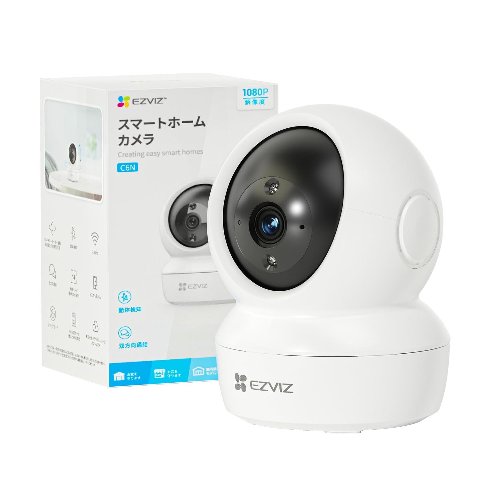 EZVIZ ペットカメラ 見守りカメラ 室内 1080p 360°首振り(水平340°/垂直55°) AI自動追尾 ナイトビジョン10m 双方向通話 マイク付き Wi-Fiカメラ 2.4GHz iPhone/Android対応 お留守番 猫・犬 監視 録画 microSD256GB C6N 2MP ホワイト