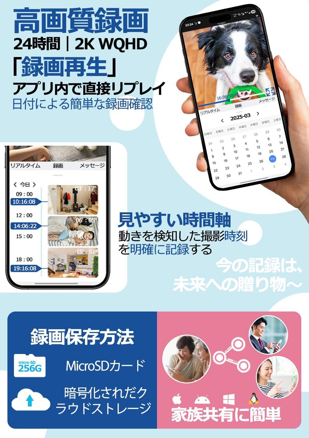 ■【2K QHDの高画質で大切なペットを見守る!】このペットカメラは、300万画素の高解像度で、鮮明な映像を提供します。お出かけ中でも、スマートフォンで大切なペットの様子をリアルタイムで確認できます。