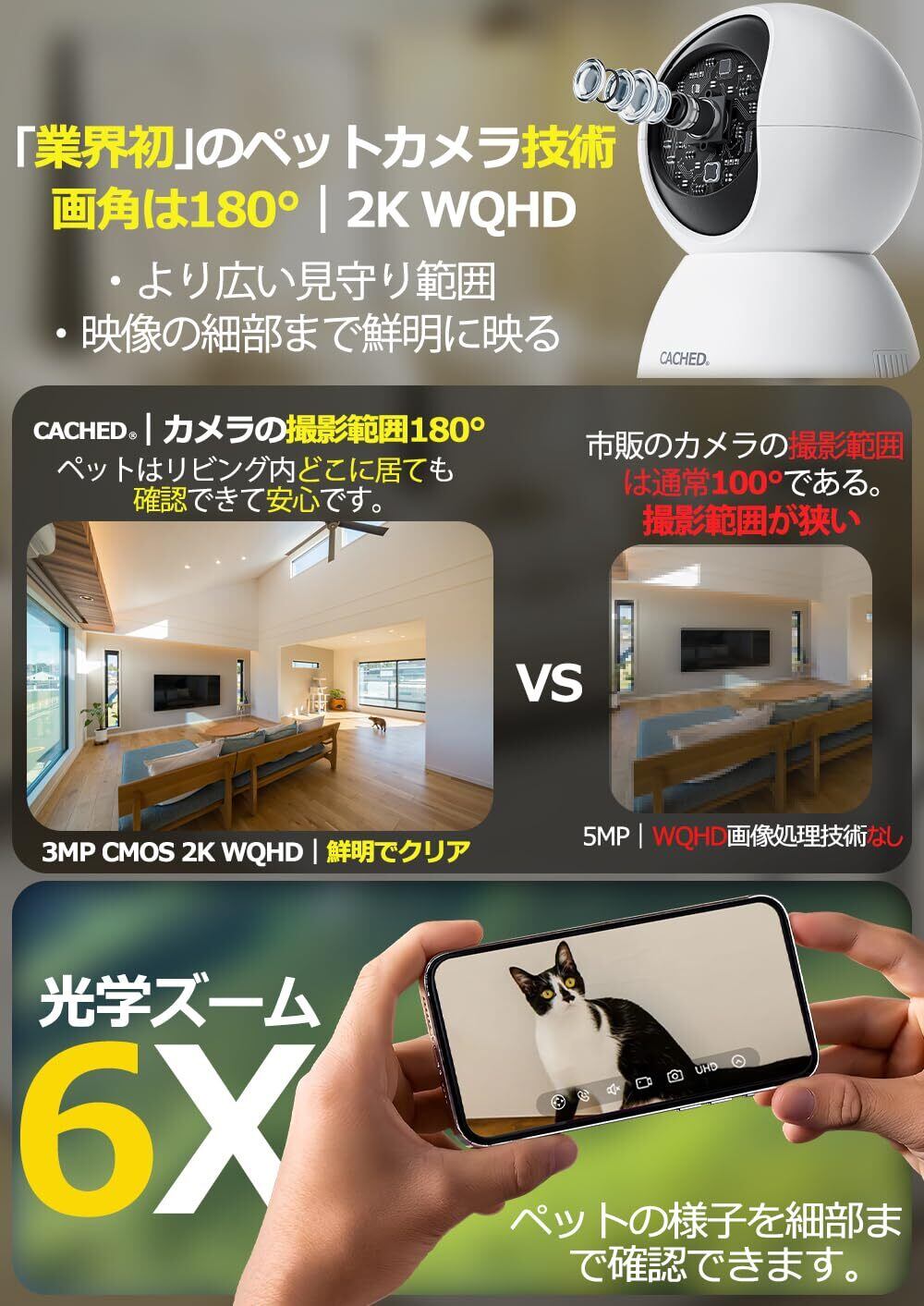 【驚くべき機能が満載!】動体検知 | スマホ即時通知 | 自動追跡 | 双方向音声通話 | スマホ操作 | 自由回転...多機能・AI遠隔見守り,大切なペットを留守中も見守ることができるCACHEDペットカメラ。