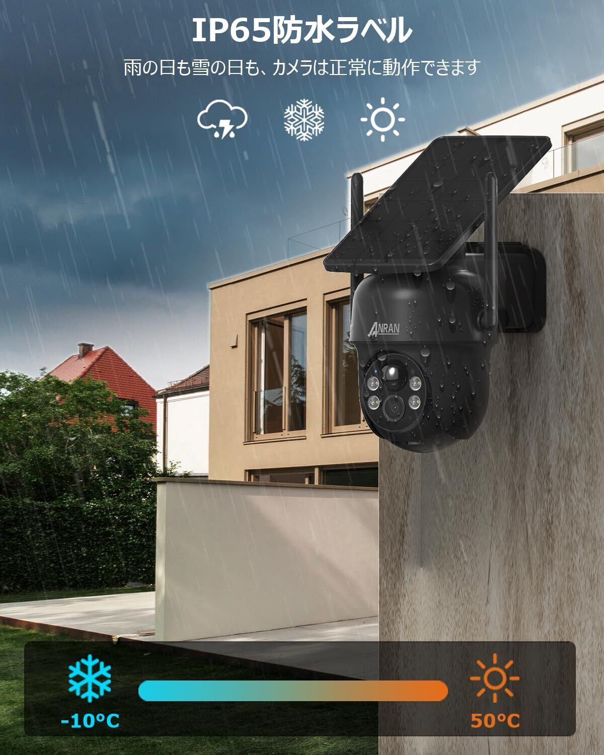 【完全無線・ソーラーパネル一体型・充電効率が40%アップ】ANRAN 電池式防犯カメラとソーラーパネルは完全一体型で、電源も設置工事も不要なので簡単に設置できます。設置時間と費用を節約できます。カメラとソーラーパネルは一体型なので、別途ソーラーパネルを設置する必要はありません。(ソーラーパネルは日当たりの良い環境でしか充電できない)蓄電量は携帯で確認可能、残量が20%以下になると、携帯連動通知が届き、安心です。 ソーラーパネル一体型で充電もっと迅速、より効率的な光エネルギー変換でき、接続不良の回避することができます。大容量充電池とWi-Fi接続で完全無線のドーム型防犯カメラです。(注意事項:①カメラのwifiを安定させるために、カメラをルータから8 m以内の位置に設置してください。②ソーラーパネル一体型のカメラなので、ソーラーパネルの角度は固定されていて調整できません。)