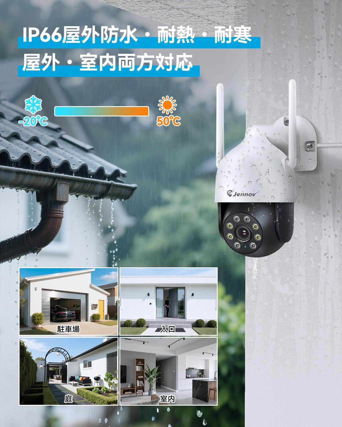 ■【IP66防水で厳しい外部環境にも対応!】JENNOV防犯カメラはIP66等級の防水性能を備えており、暴風雨や悪天候からもしっかりと保護されています。屋外に安心して設置できるため、様々な環境に適応します。