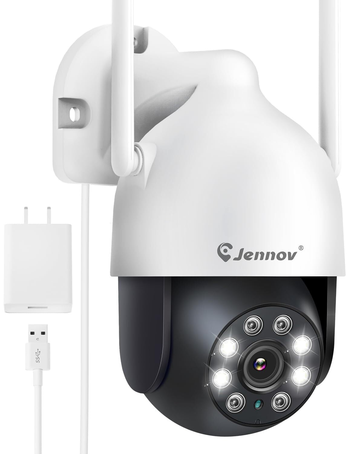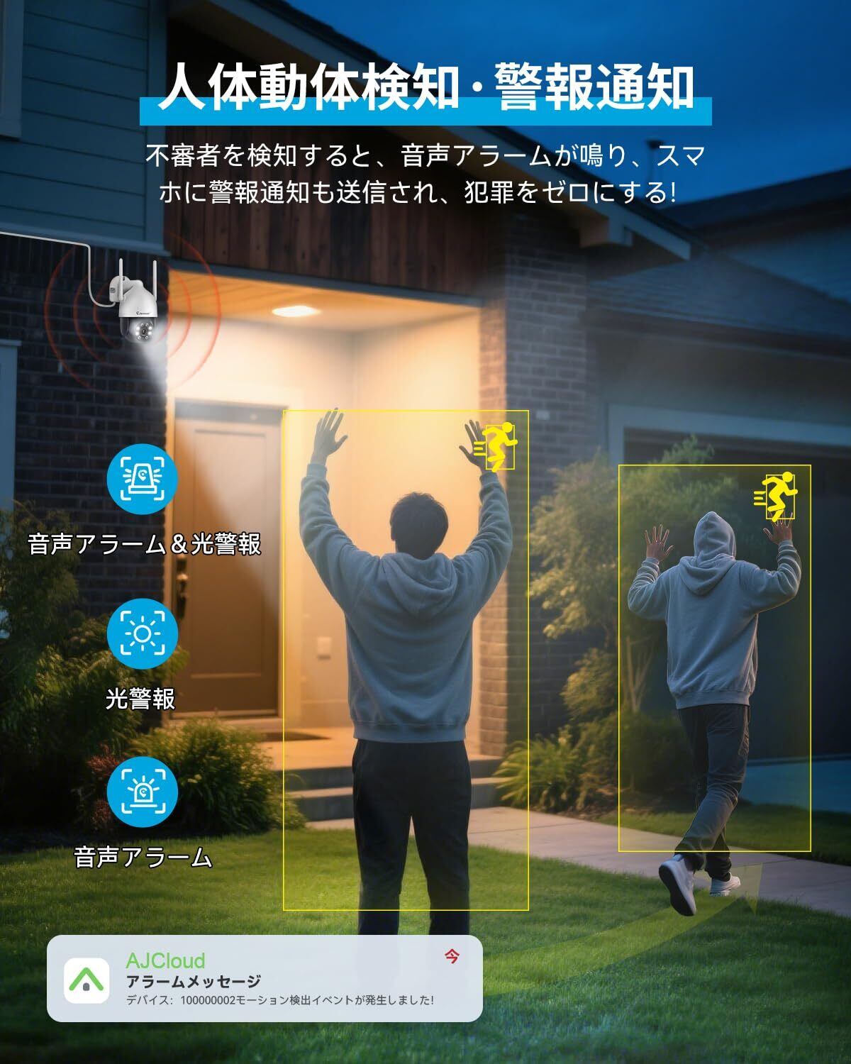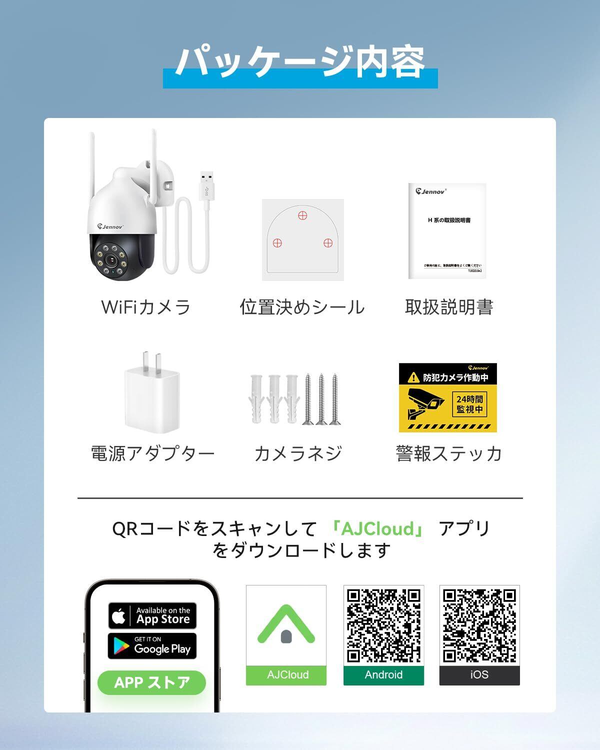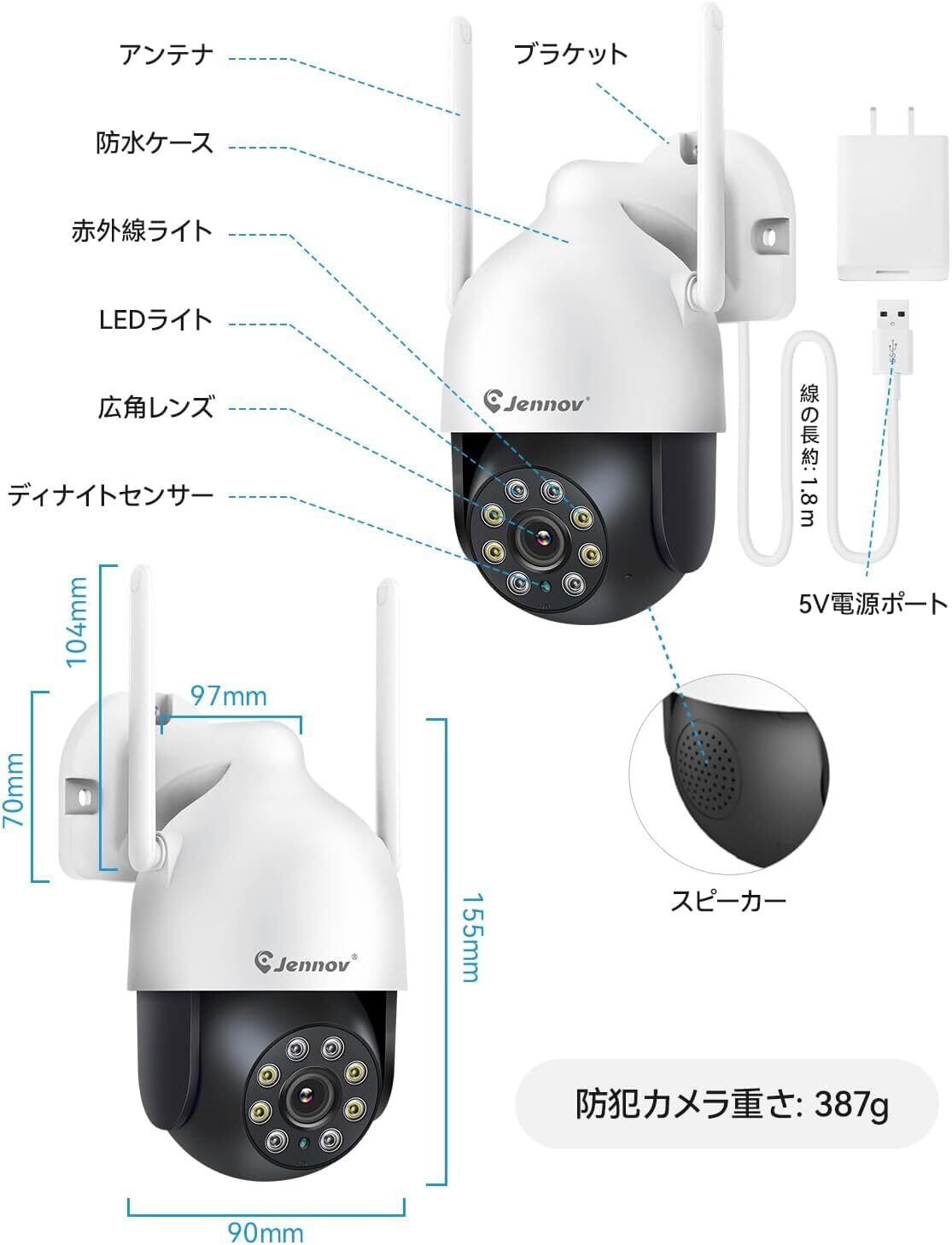 JENNOV 防犯カメラ 屋外 IP66防水 wifi 自動追尾機能 2.4GHz&5GHz対応 家庭用 24時間録画 監視カメラ 室内 Alexa対応 人感センサー 投光威嚇 カラー暗視撮影 360度広角撮影 双方向通話 音声アラーム ネットワークカメラ 動体検知機能 スマホ対応 遠隔監視 RTSP対応 ⾒守りカメラ SDカード付属なし AJCloudアプリ対応