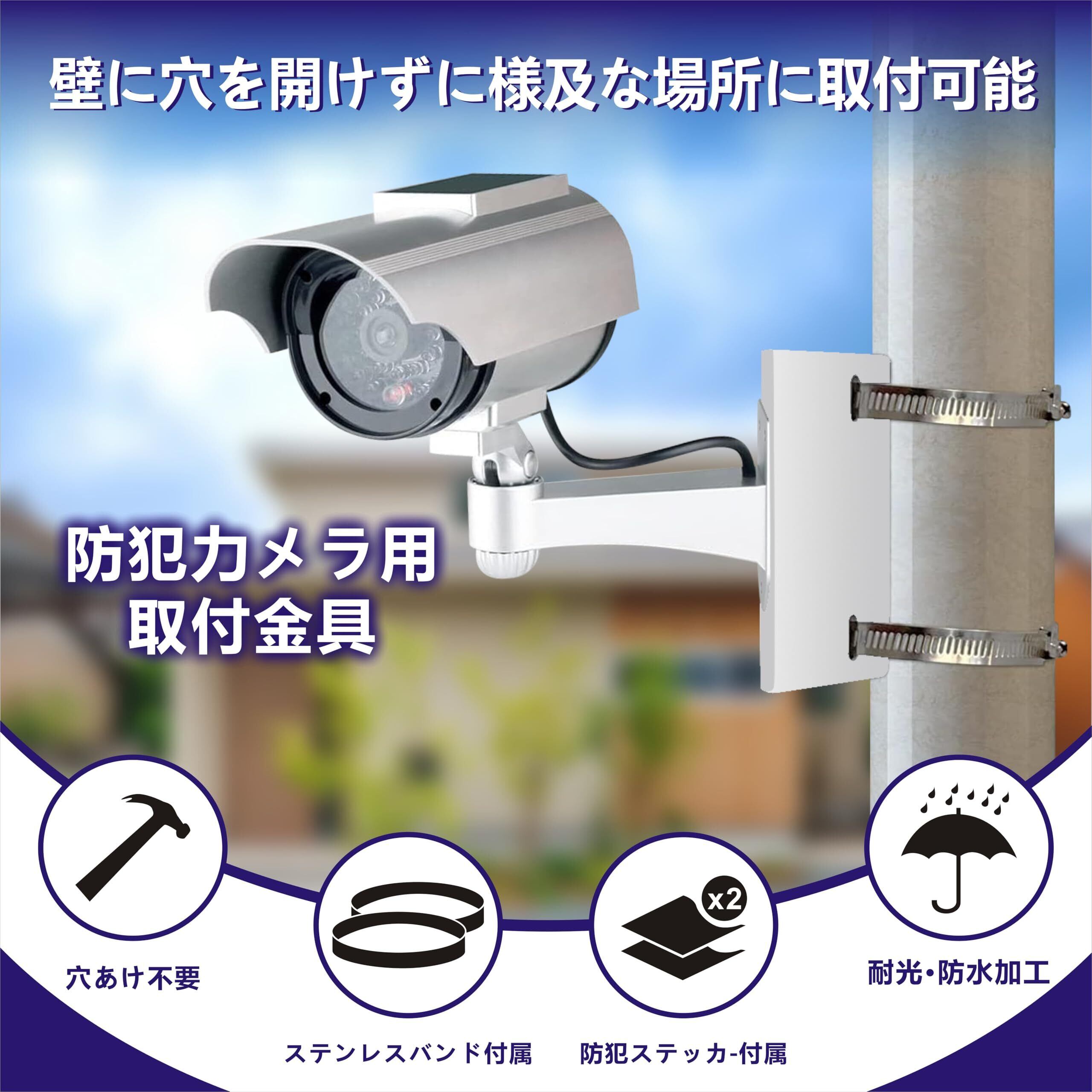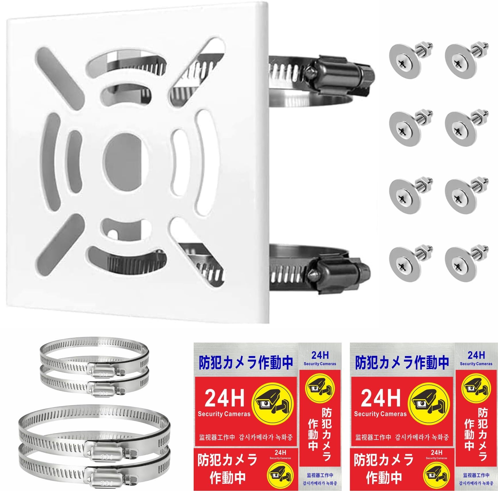 防犯カメラ 取付金具 穴あけ不要 取り付け金具 ポール ブラケット 監視カメラ 固定 ステンレスバンド 角柱 円柱 屋内 屋外 ブラケット ポール ハウジング スタンド(ステンレスバンド 4本/ボルト セット8式/防犯ステッカー 6枚 付属) (白-1 個)