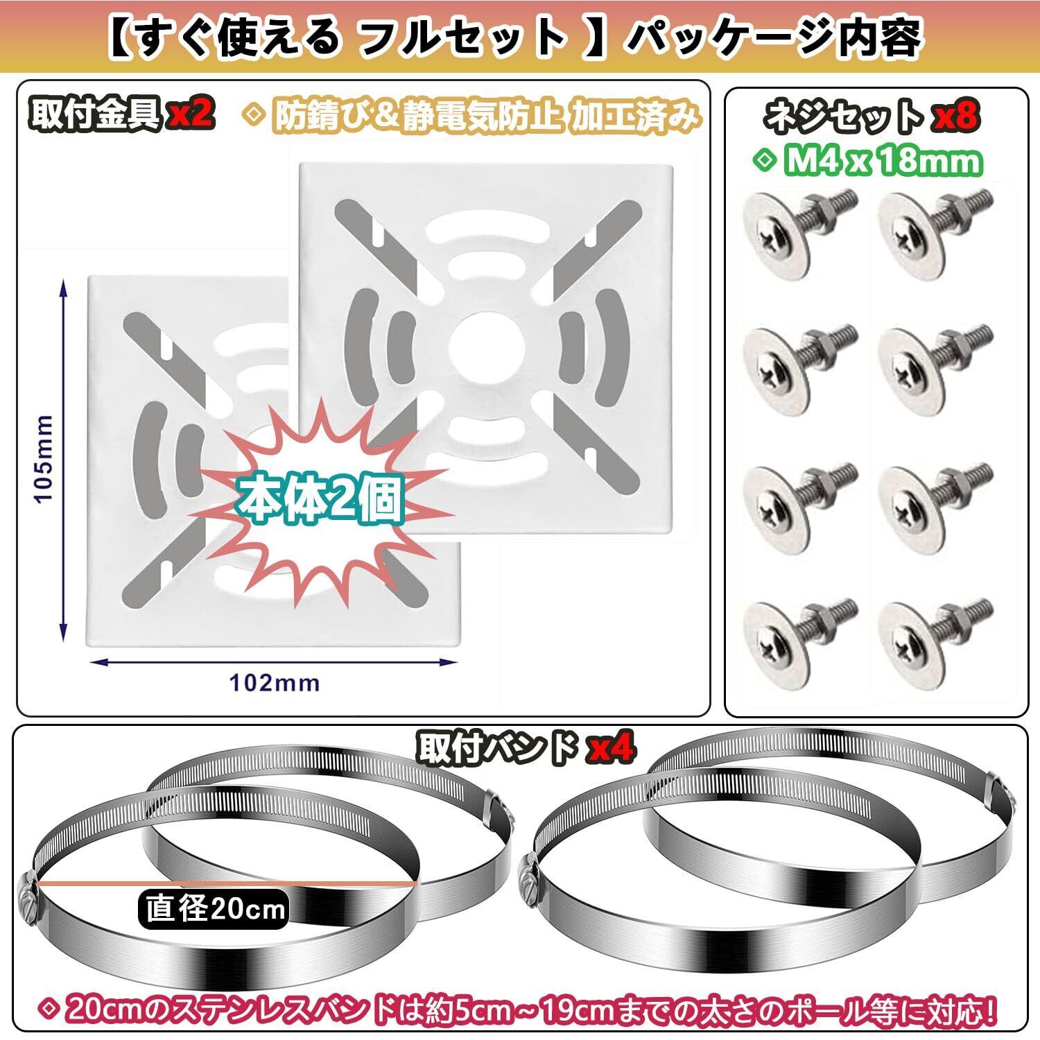 【限定セール】SYUNASYU 防犯カメラ 取り付け金具 円柱 角柱 [すぐ使える フルセット] ブラケット 取付金具 ポール ステンレスバンド 4本 ボルトセット 8式 防犯カメラ取付金具 固定 センサーライト クランプ 屋外 スタンド 空き巣 対策 (ホワイト2個)