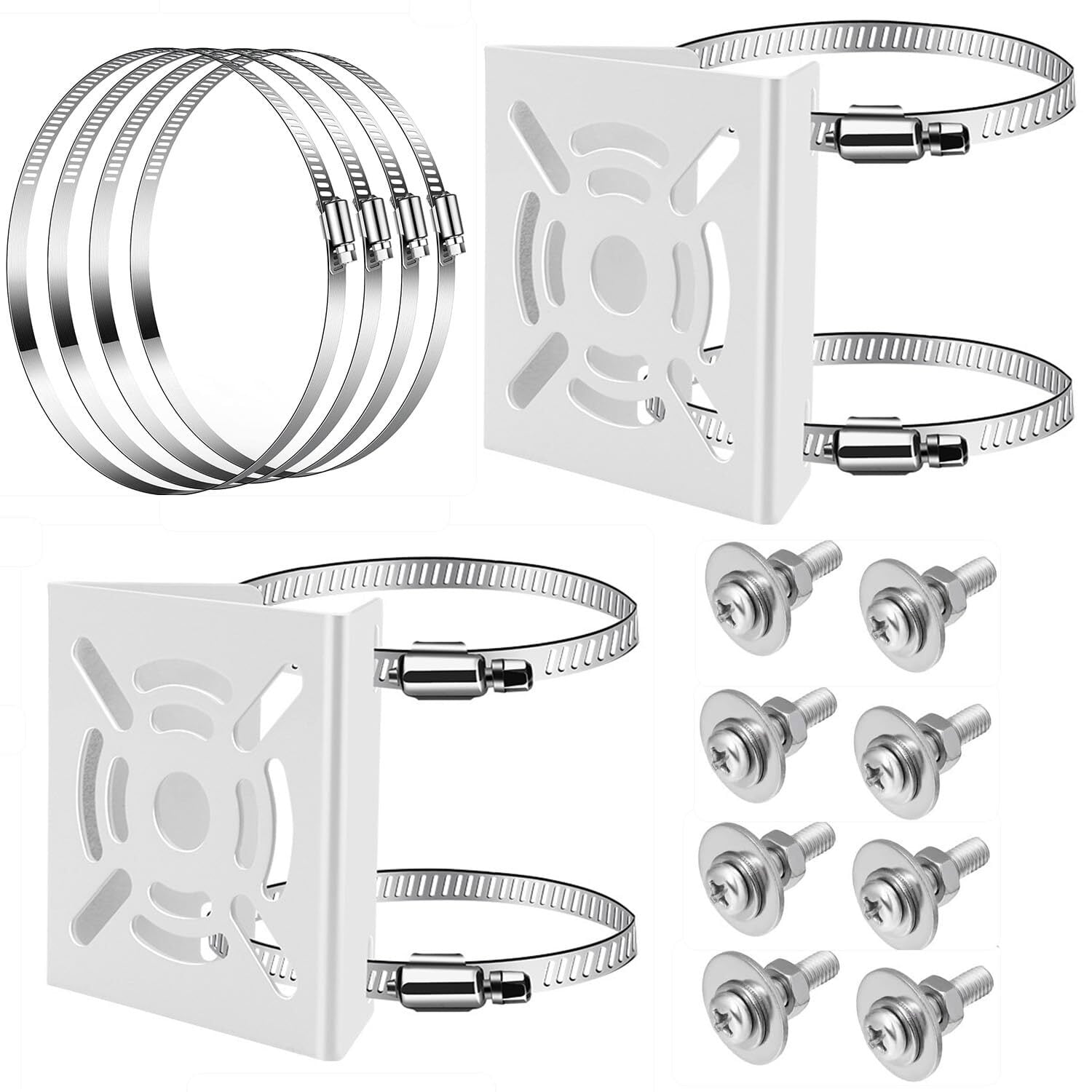 SYUNASYU 防犯カメラ 取り付け金具 円柱 角柱 [すぐ使える フルセット] ブラケット 取付金具 ポール ステンレスバンド 4本 ボルトセット 8式 防犯カメラ取付金具 固定 センサーライト クランプ 屋外 スタンド 空き巣 対策 (ホワイト2個)
