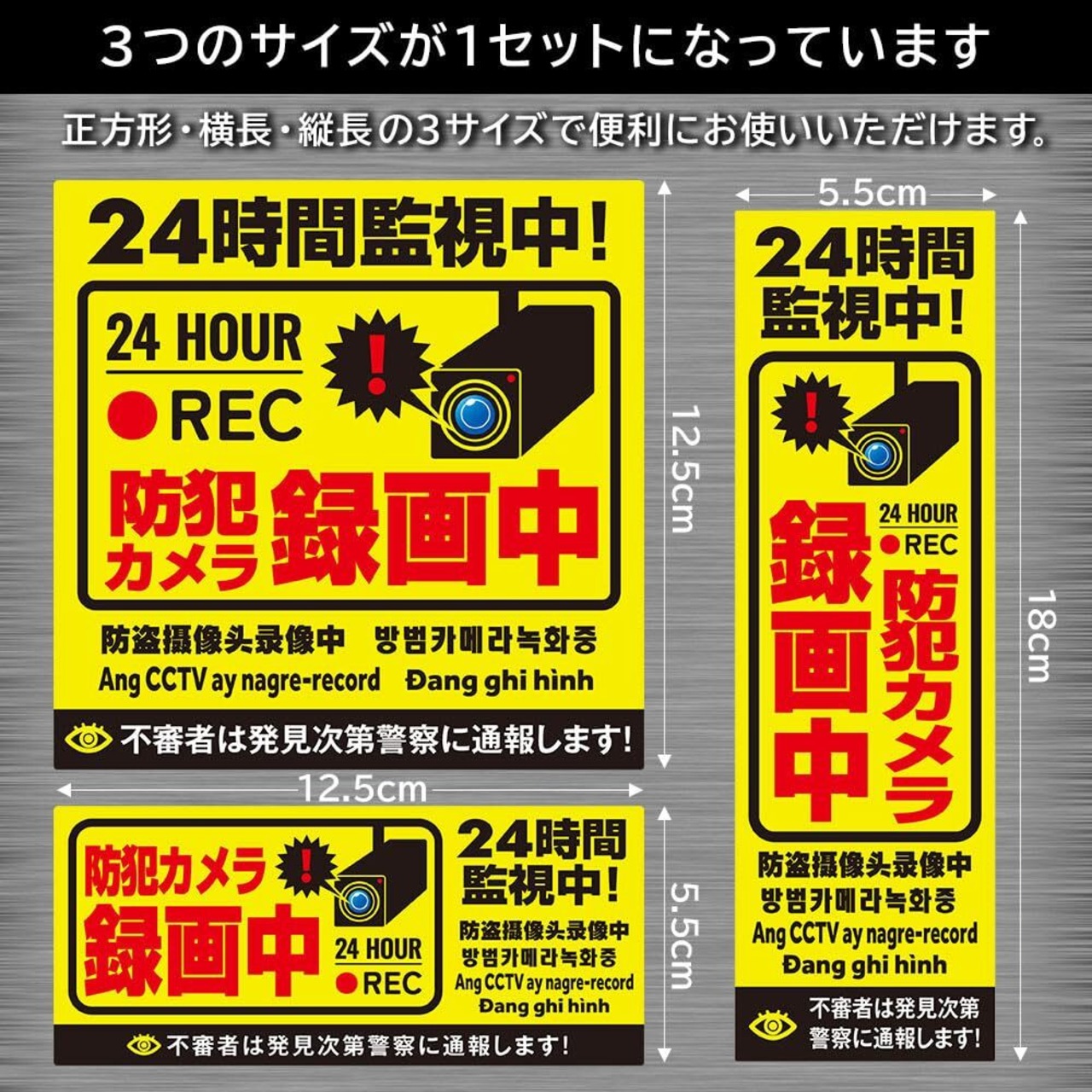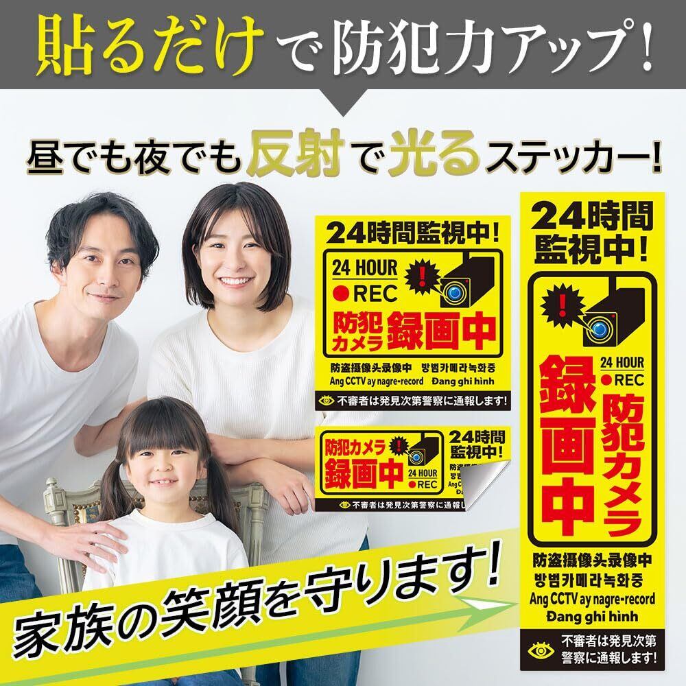 防犯カメラ ステッカー 作動中 [耐光/耐水/耐候/反射] 防犯 シール 屋外【6カ国語に対応】録画中 セキュリティ タグ 監視カメラ センサー(1)