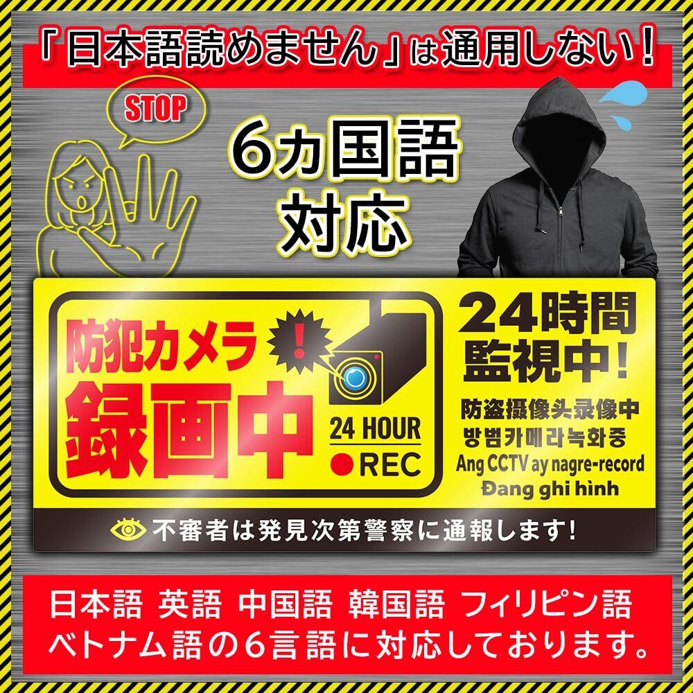 ■【6カ国語対応で海外の方にも安心!】ステッカーには、日本語をはじめ、英語、中国語、韓国語、フランス語、スペイン語の計6カ国語で「防犯カメラ作動中」と記載されています。国籍を問わず、どなたでも安心してご利用いただけます。