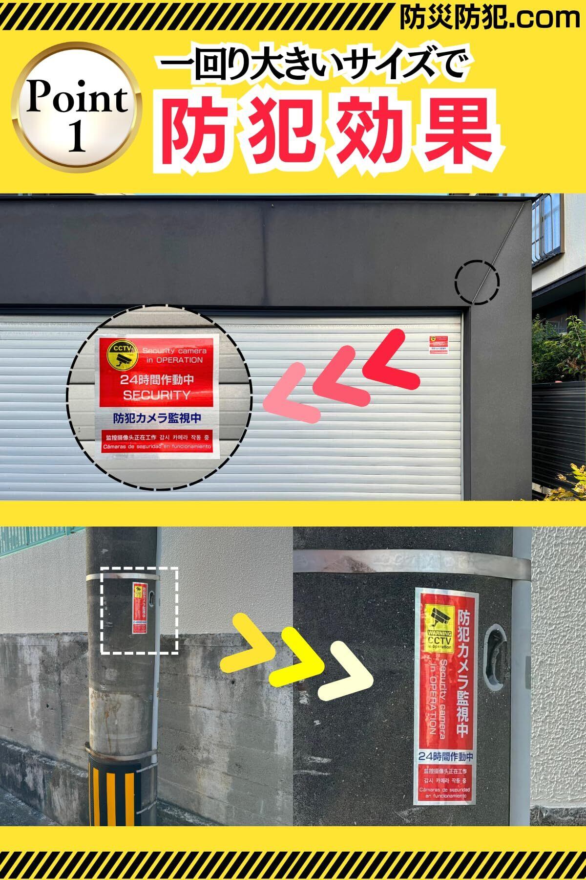 ■【高耐久性で屋外でも安心!】本商品は耐光、耐水、耐候性に優れた素材を使用しており、屋外の過酷な環境でも長期間にわたってその効果を発揮します。雨や日光にさらされても、鮮明な印刷が持続し、いつでもしっかりと防犯対策を行えます。