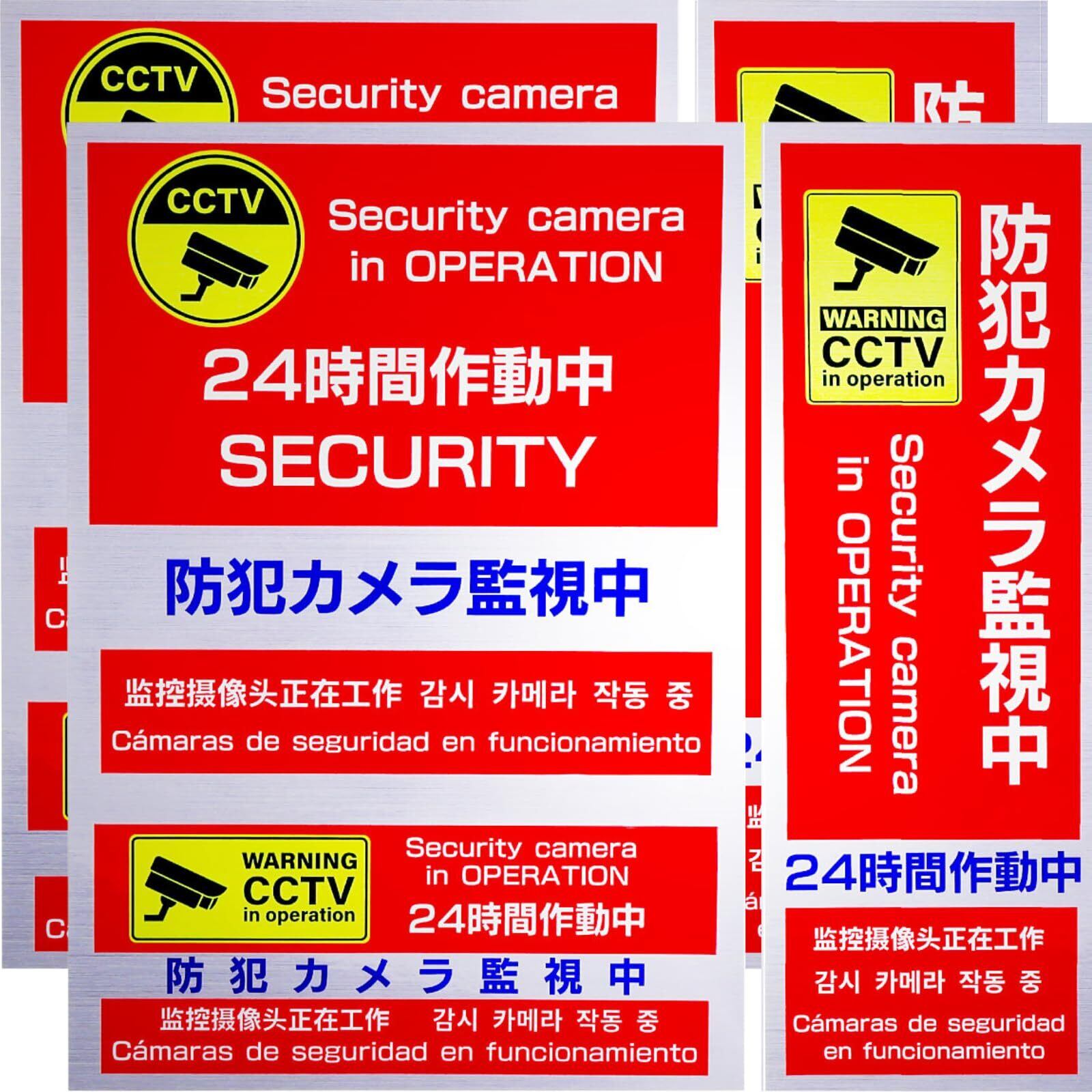 【TVタックルで紹介されました】防犯ステッカー 【5か国語に対応】 防犯シール 防犯カメラ作動中 防犯カメラステッカー 監視カメラシール 防犯カメラシール 屋外 [耐光/耐水/耐候] 3サイズ 【防犯ブランド ピカジャケ】 (赤6)