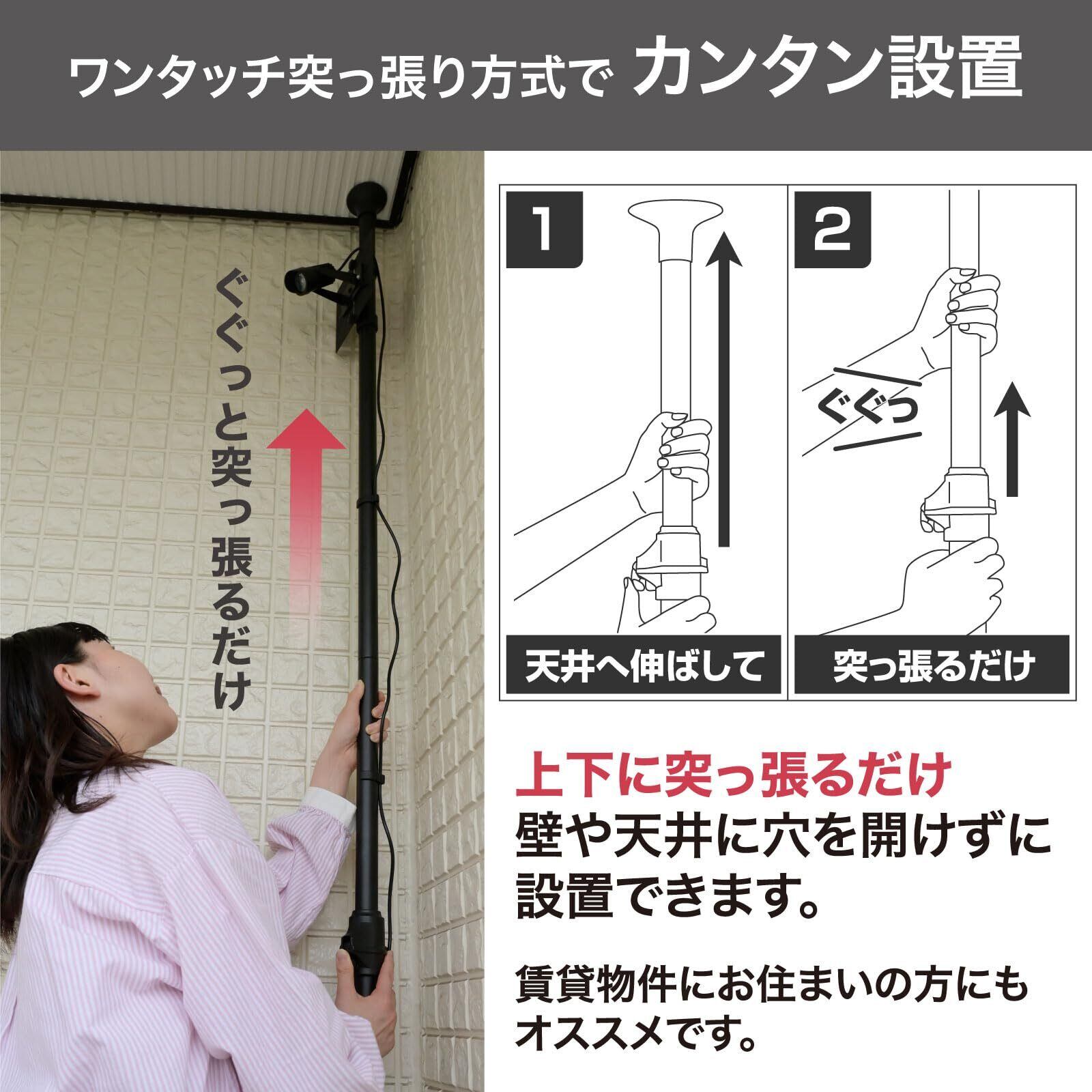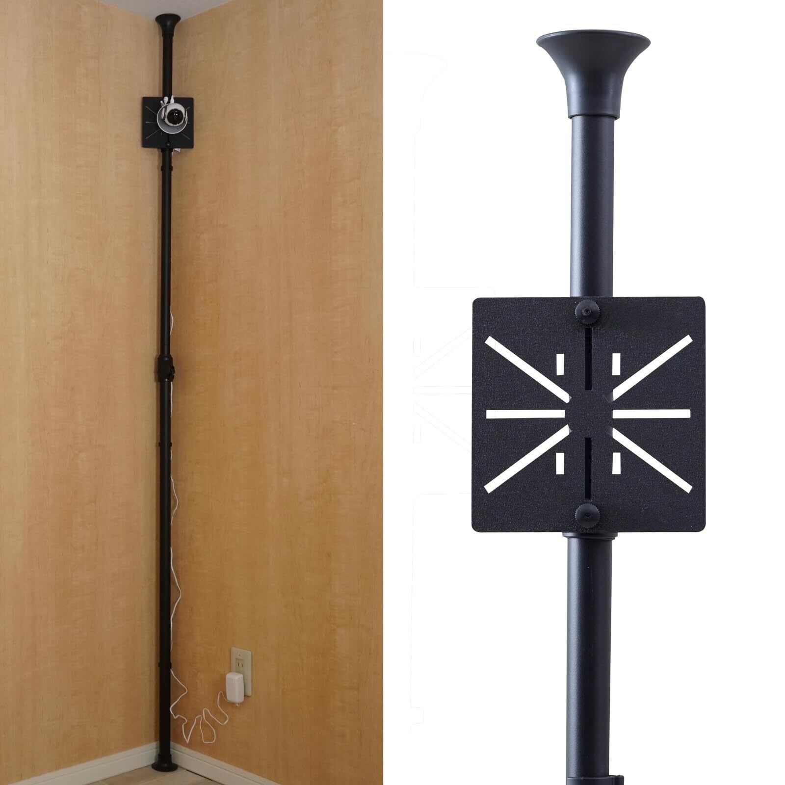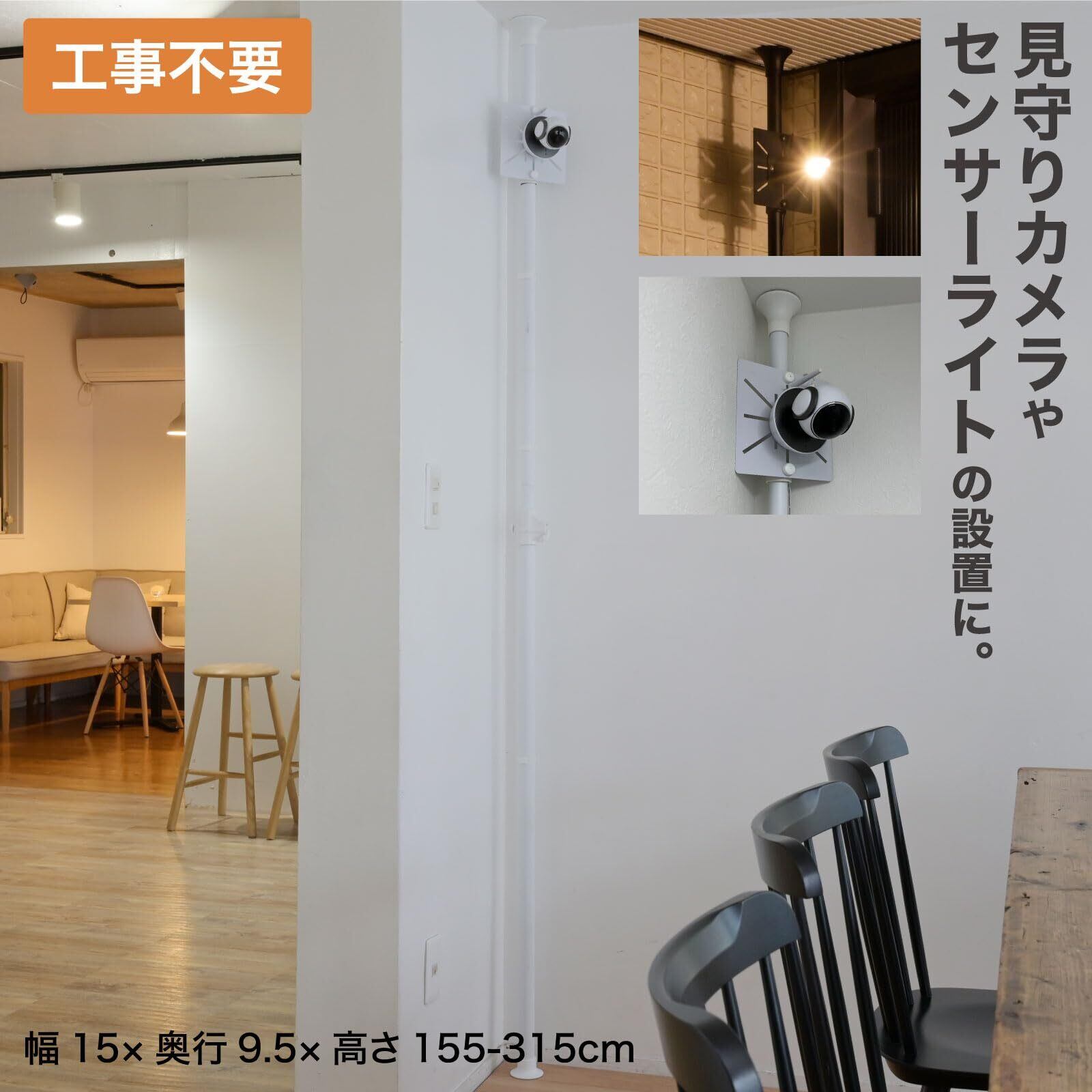山善(YAMAZEN) 防犯カメラ 取付金具 突っ張り棒 工事不要 屋内 室内 屋外 防犯ライト 人感センサー 監視カメラ かんたん突っ張り(実用新案取得済) 幅15×奥行9.5×高さ155-315cm 組立品 ブラック TLH-315(BK)