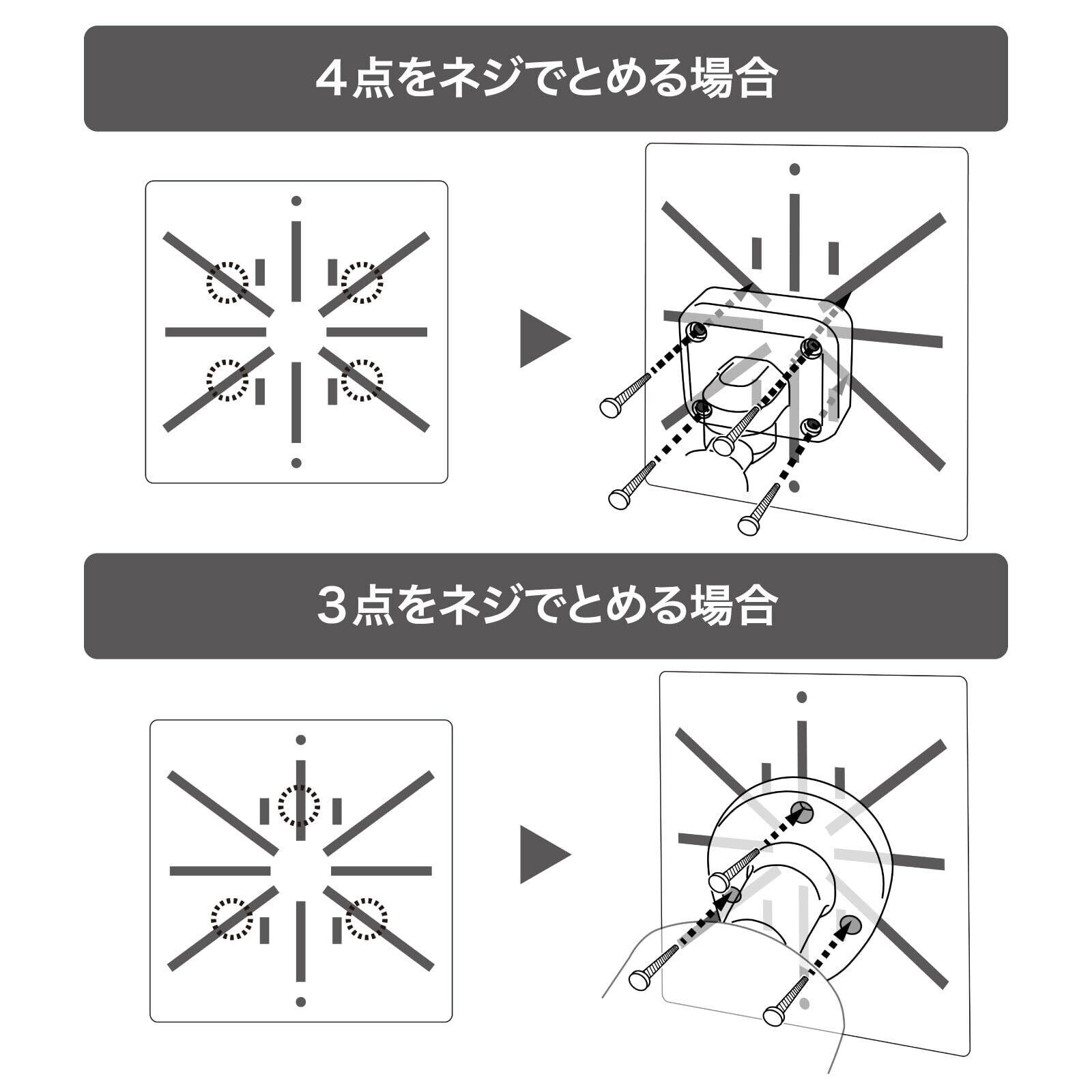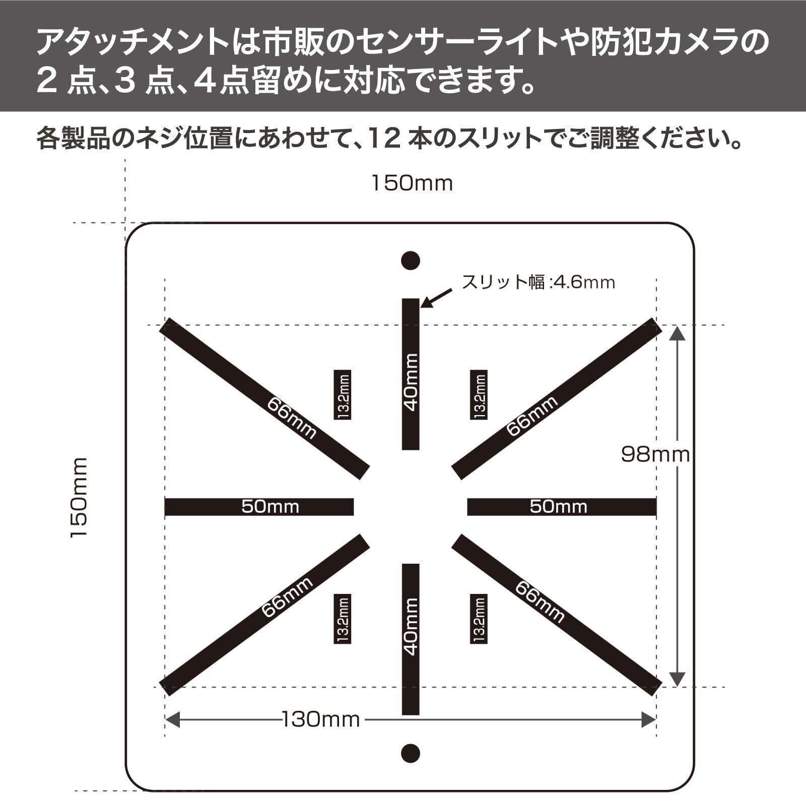 ●アタッチメントは市販のセンサーライトや防犯カメラの2点、3点、4点留めに対応できます。