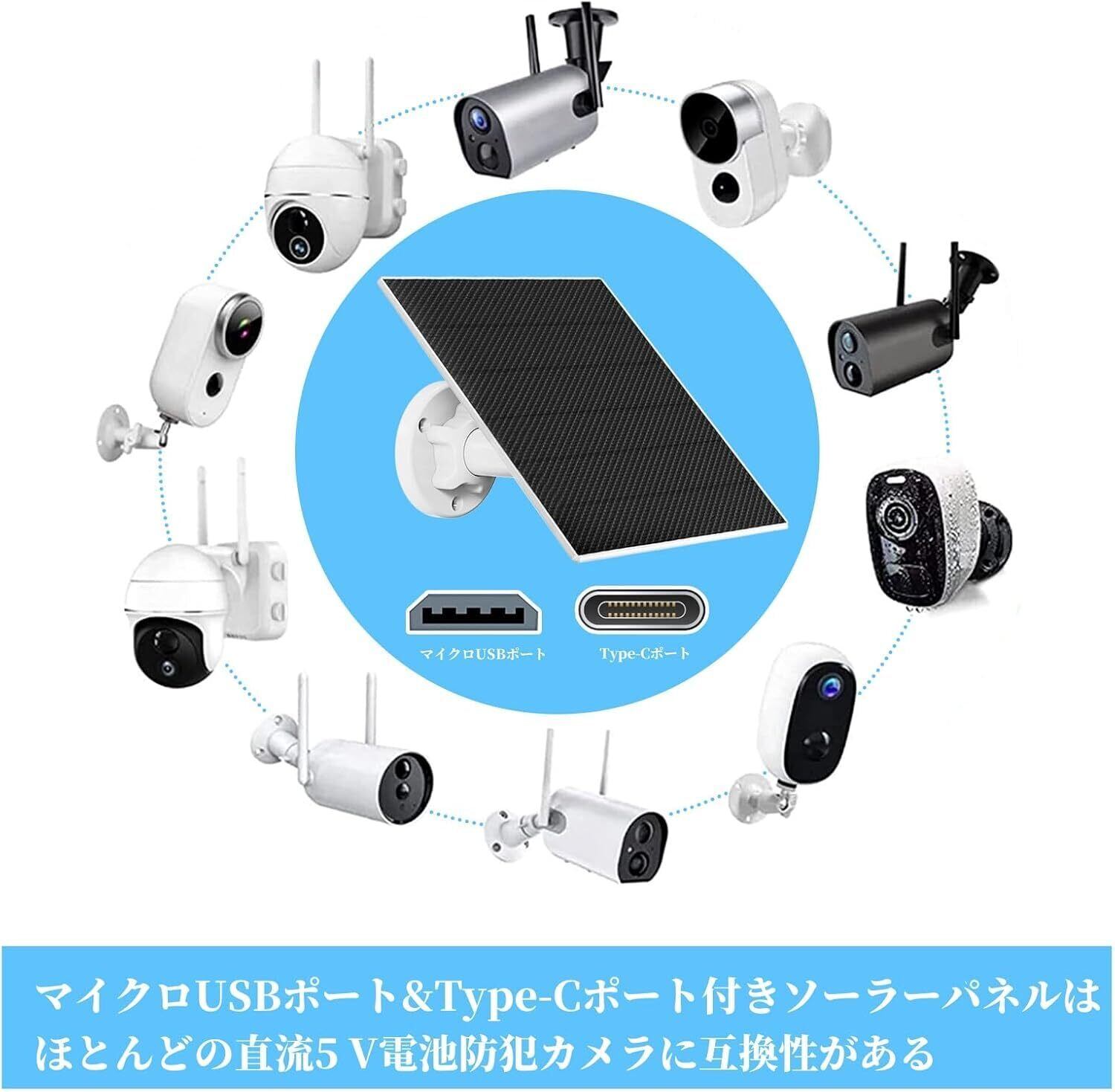 5W 5V防犯カメラ用 ソーラーパネル 太陽光パネル 小型 軽量 角度調整可能 IP65防水 屋外対応 高効率 省エネルギー ソーラーチャージャー 太陽光発電Micro USB Type-B/Type-C ポート対応