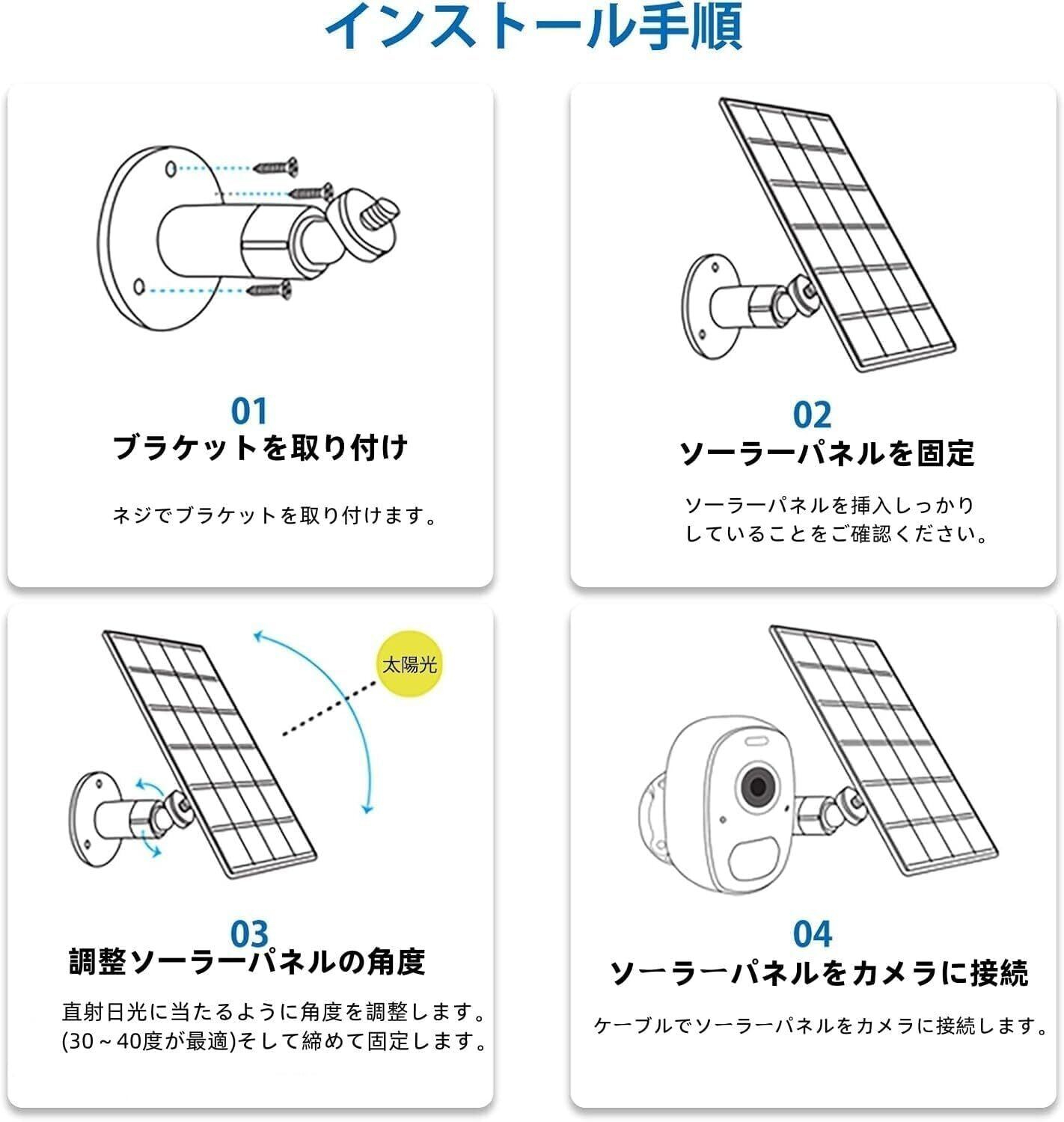 互換性:人気のソーラーパネルは防犯カメラ用に設計されており、通常、5Vの直流入力が可能です。カスタムのシリコン製の充電口カバーが付いており、カメラのバッテリーを効率的に充電することができます。(Arlo Blinkカメラとは互換性がありません)マイクロUSBポートまたはUSB type-cポートを備えたほとんどの5V充電可能カメラと互換性があります。(ただし、ご自宅の防犯カメラに充電式のバッテリーがない場合、このソーラーパネルは互換性がありません。充電バッテリーが付属していることが条件です)
