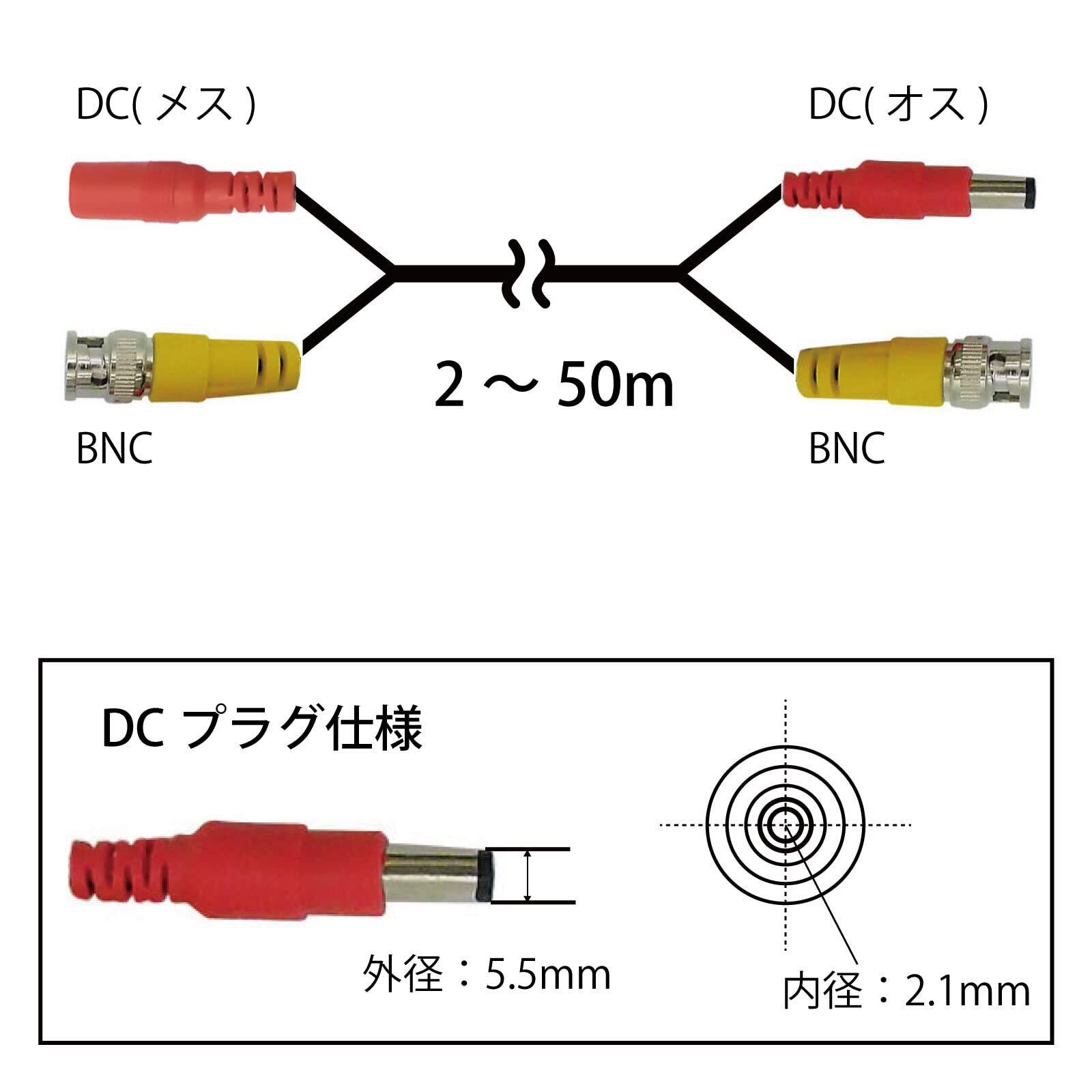 CCTV防犯カメラ延長用、映像・電源一体型BNCケーブルです。